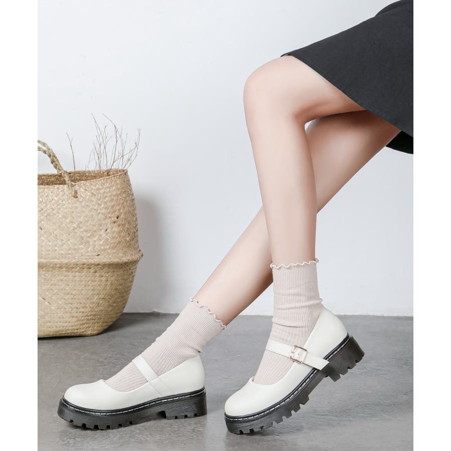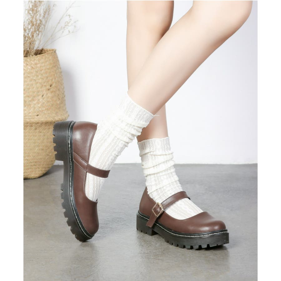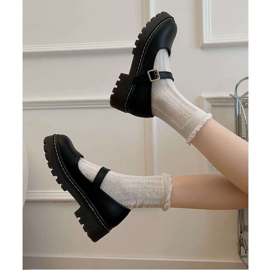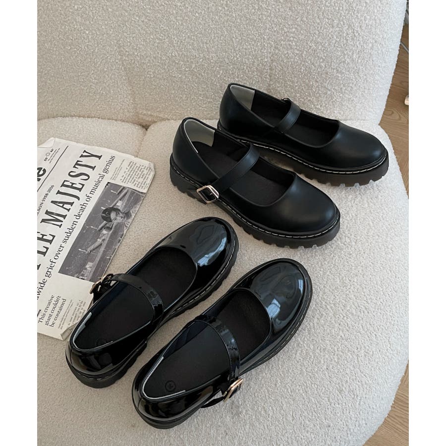 程よい高さの厚底ソール(約4㎝)のメリージェーンシューズ。