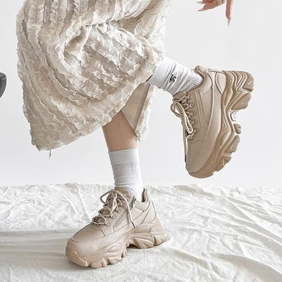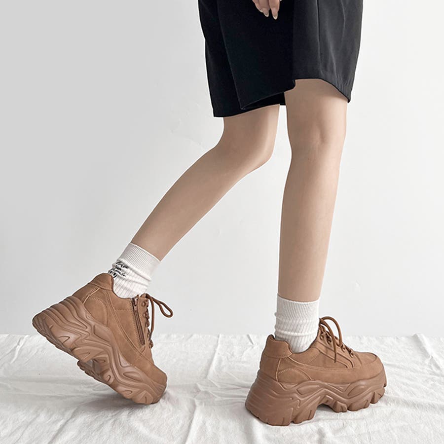 投稿日:2023.10.26厚底スニーカーで1番好きかもしれないです。靴紐だけでなく、チャックも着いているので脱ぎ履きしやすいと思います。ただ靴紐を締めすぎると足首が若干痛いので緩めがいいかもです。いまのところ靴擦れはしてないです。