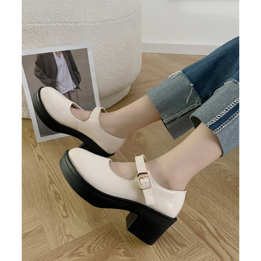厚底 ヒールアップ メリージェーン ストラップ シューズ 1985