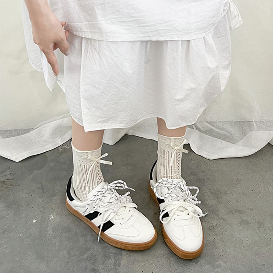 ●4WAYで楽しめる、三種類の靴紐&パールパーツ付