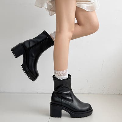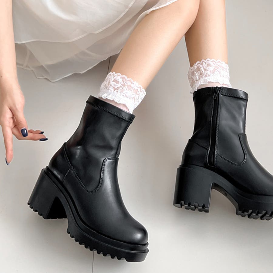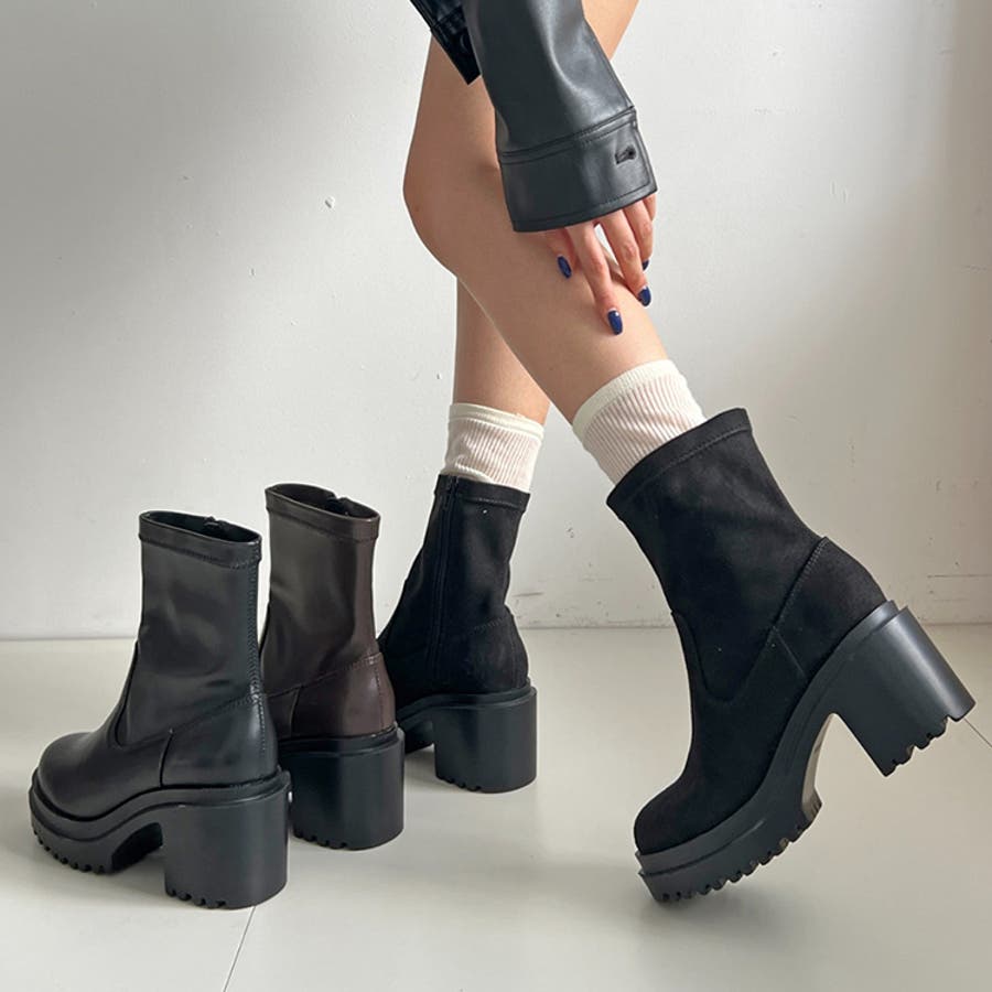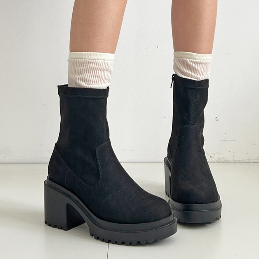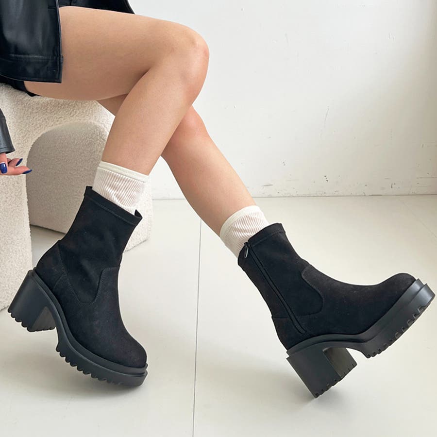 軽量厚底 ヒールアップ フィット ストレッチ ショートブーツ 2643