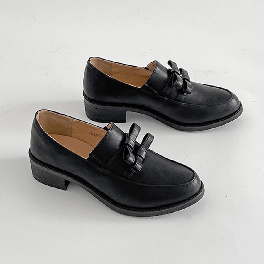 超軽量厚底 ダブル リボン ローファー 2646