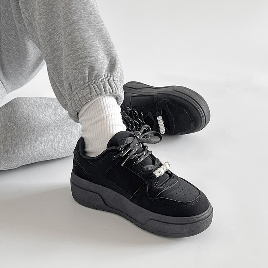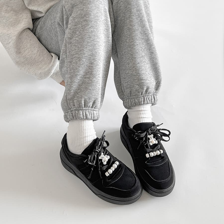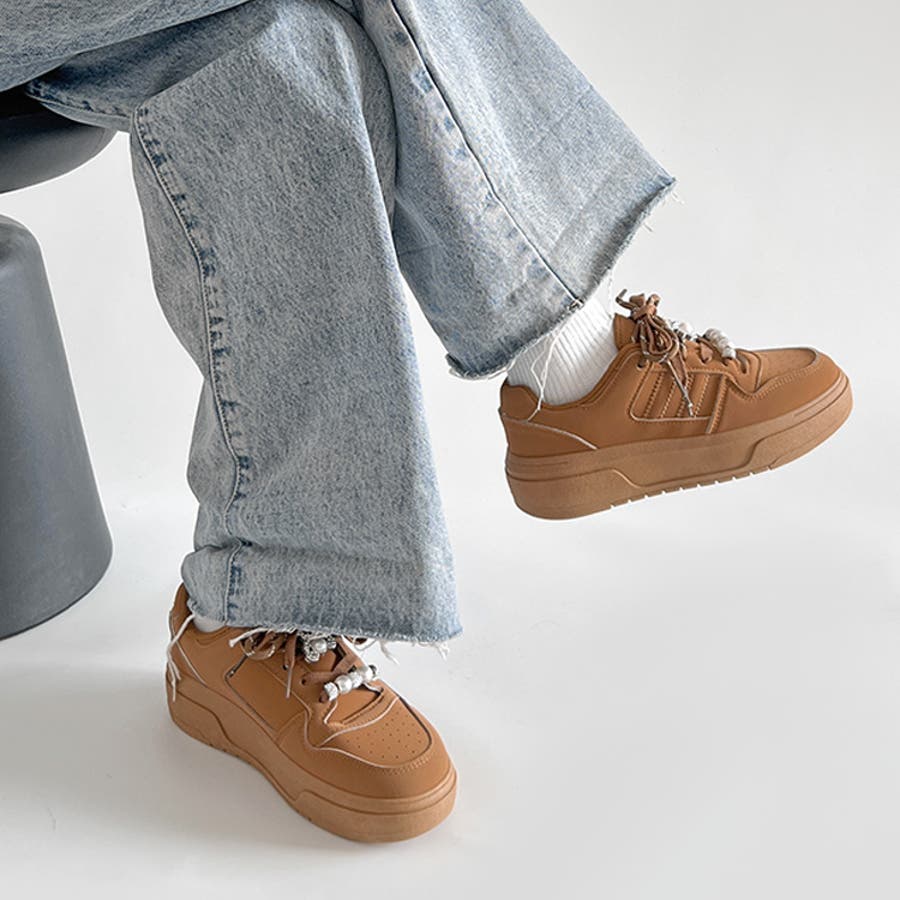 厚底 チャーム付 ダブルシューレース コート スニーカー 5434