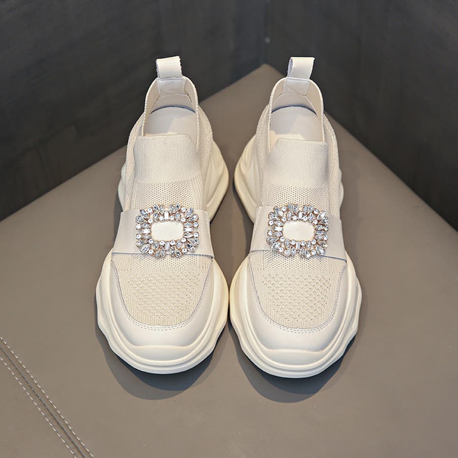 軽量厚底 スポーティー ビジュー ニット スニーカー 670
