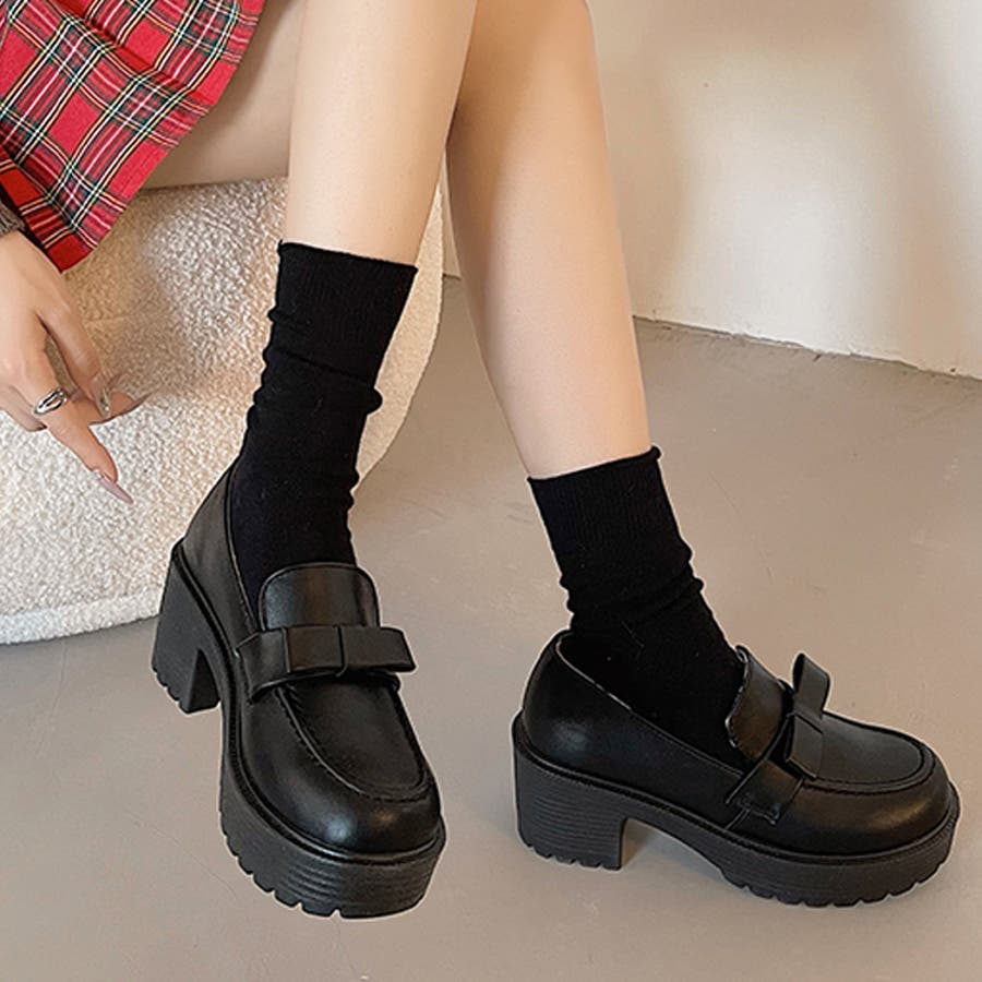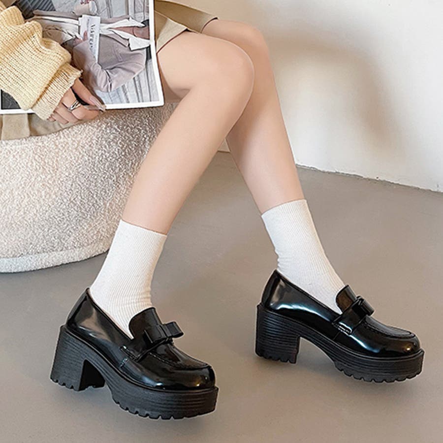 足もと厚底でバランスが取りやすいのでミニ丈、ソックスコーデにトライしやすいです。