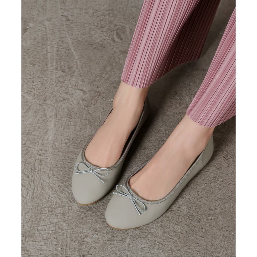 丸過ぎないラウンドトゥデザインが使いやすい定番バレエシューズ。