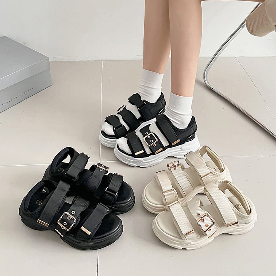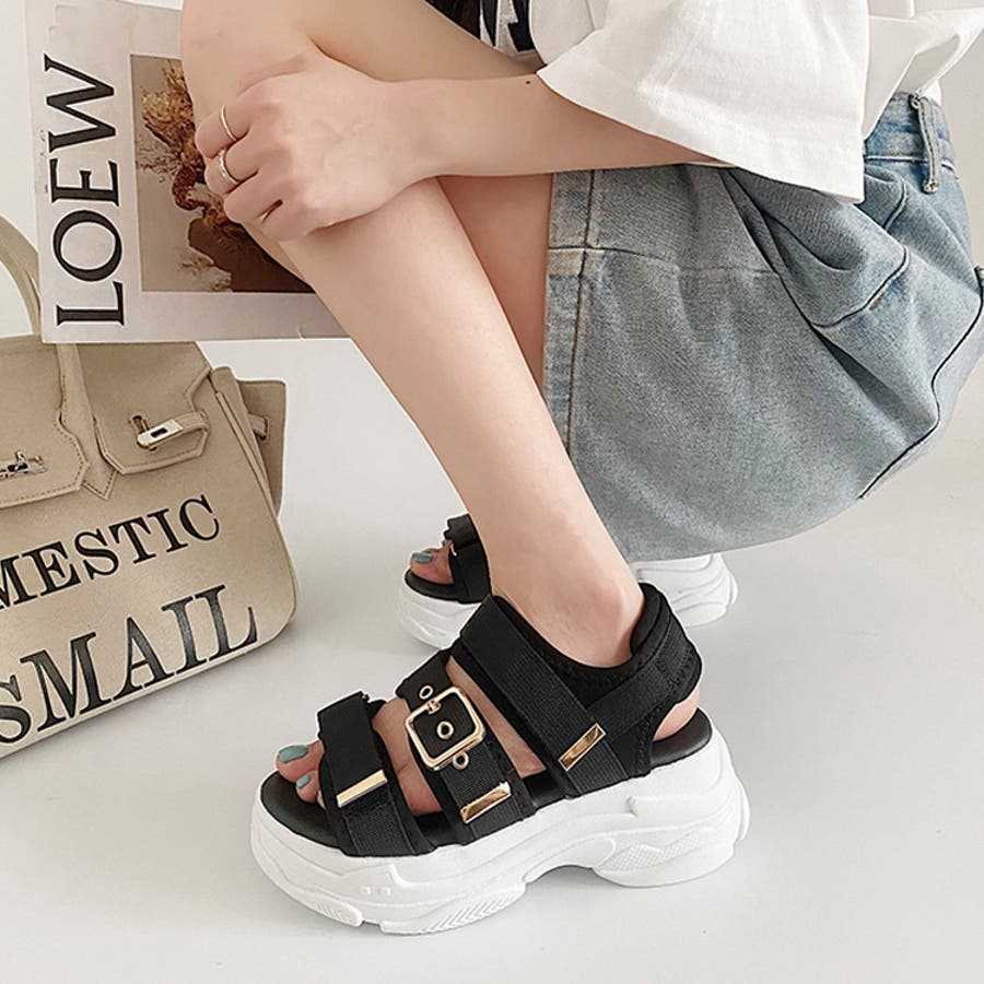 軽量厚底ボリュームソール ベルクロ バックル スポーツサンダル 7486