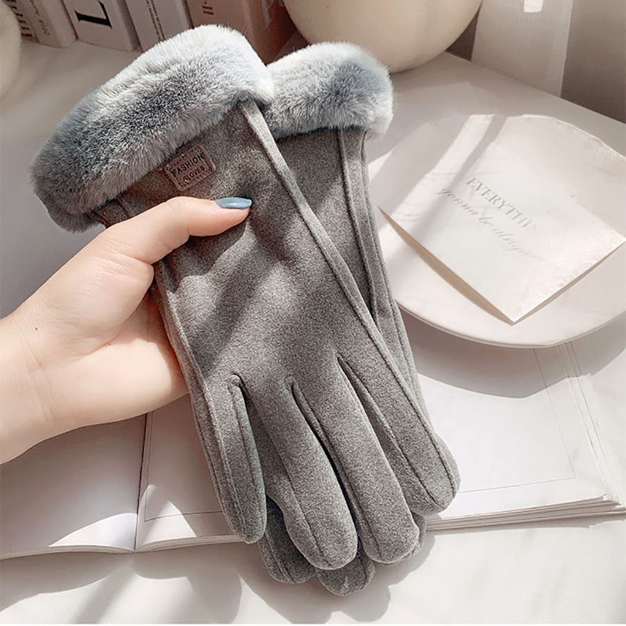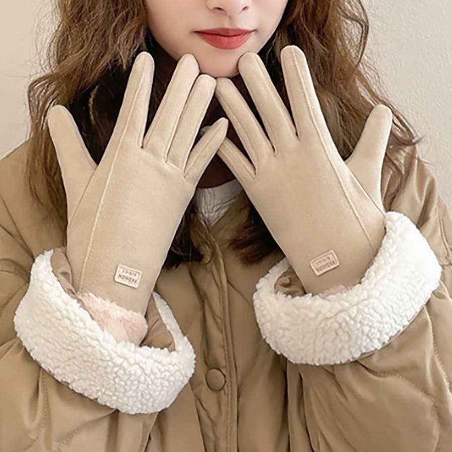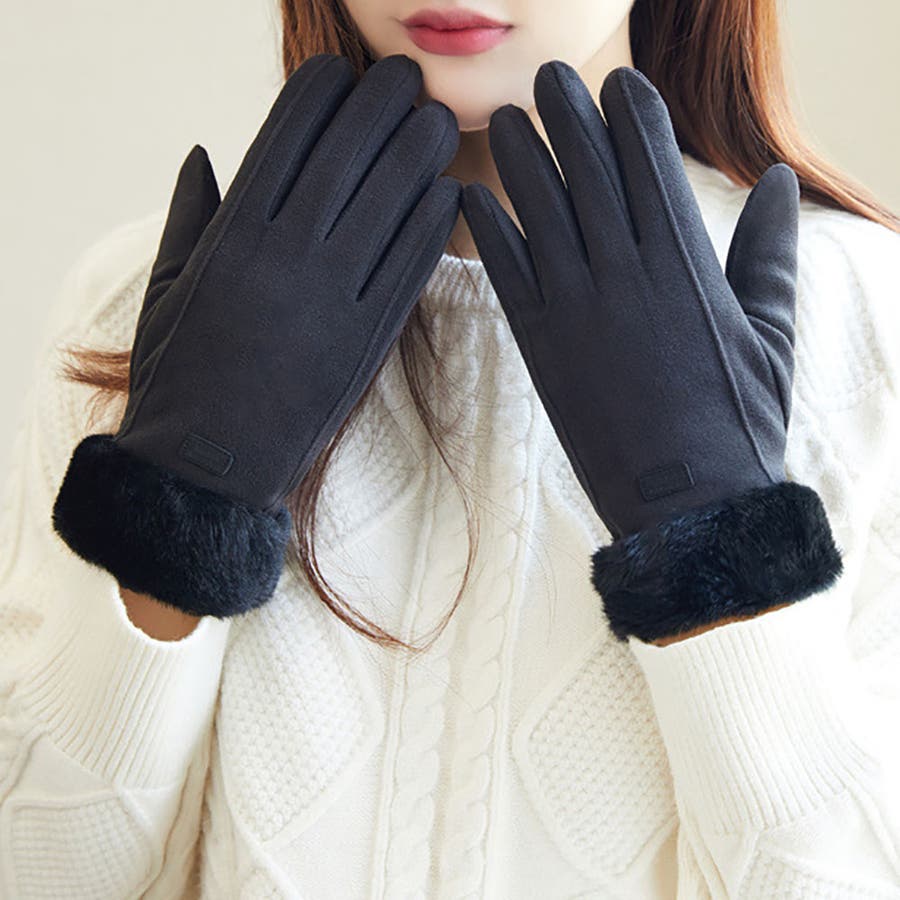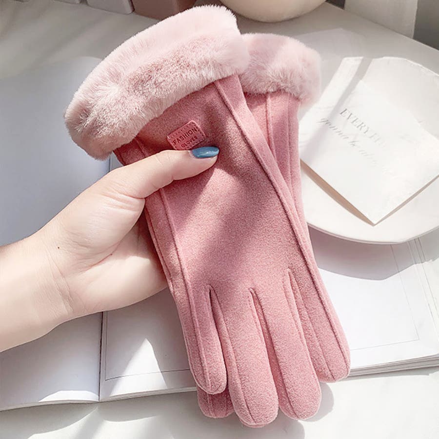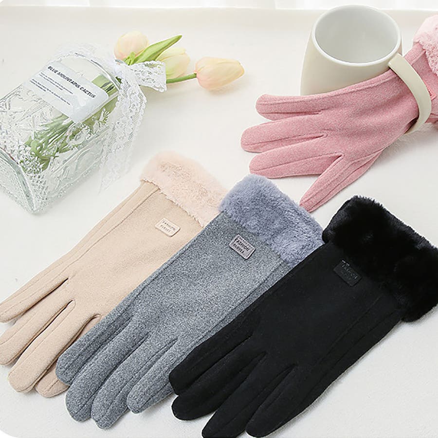 レディース スマホ対応 タッチパネル対応 裏起毛 ファー手袋