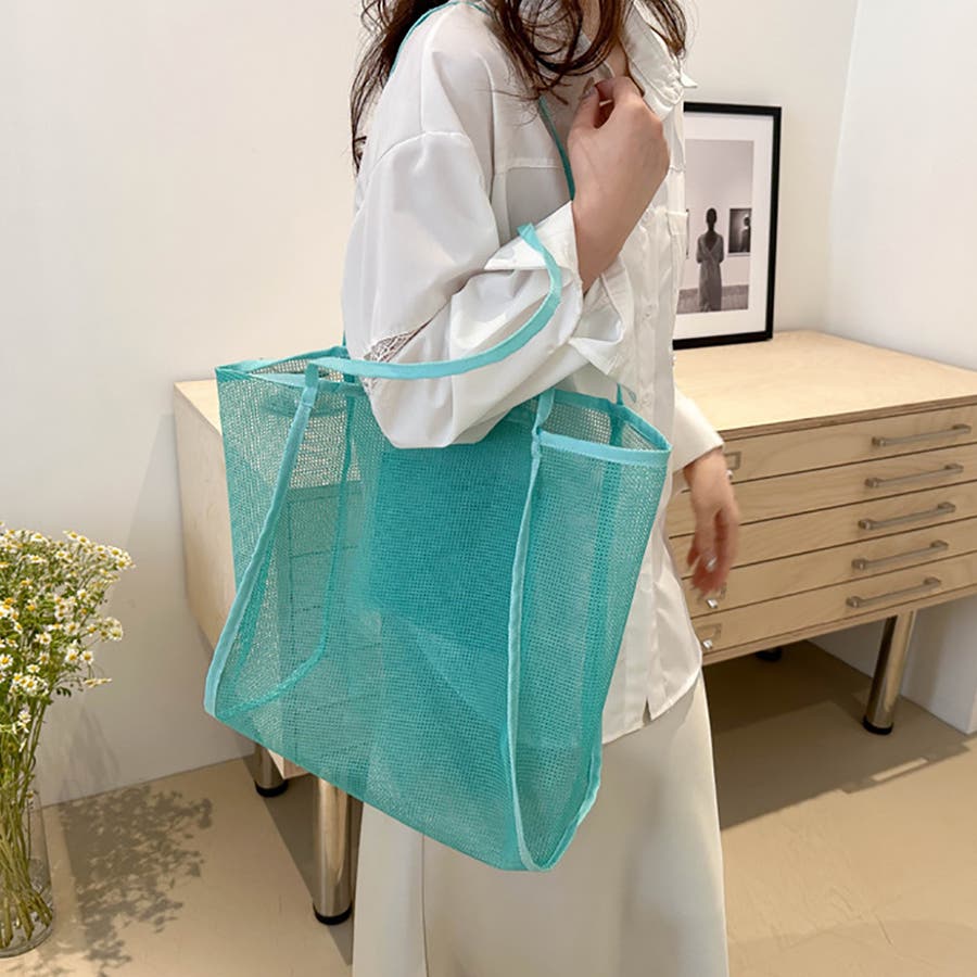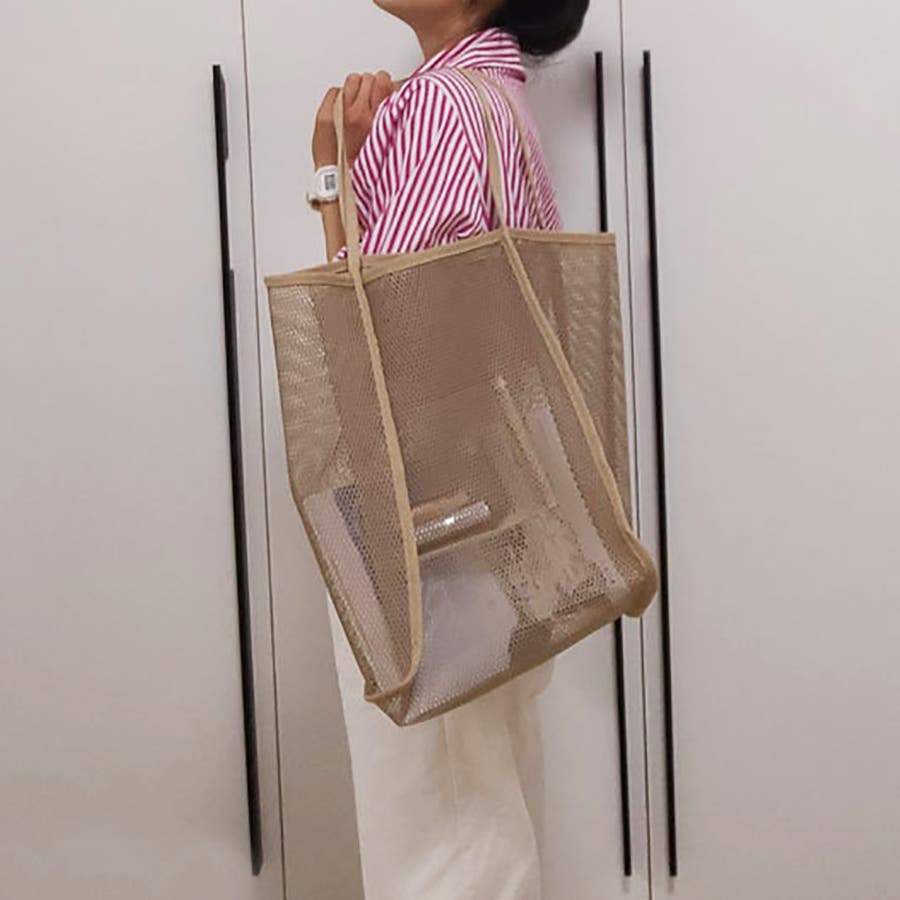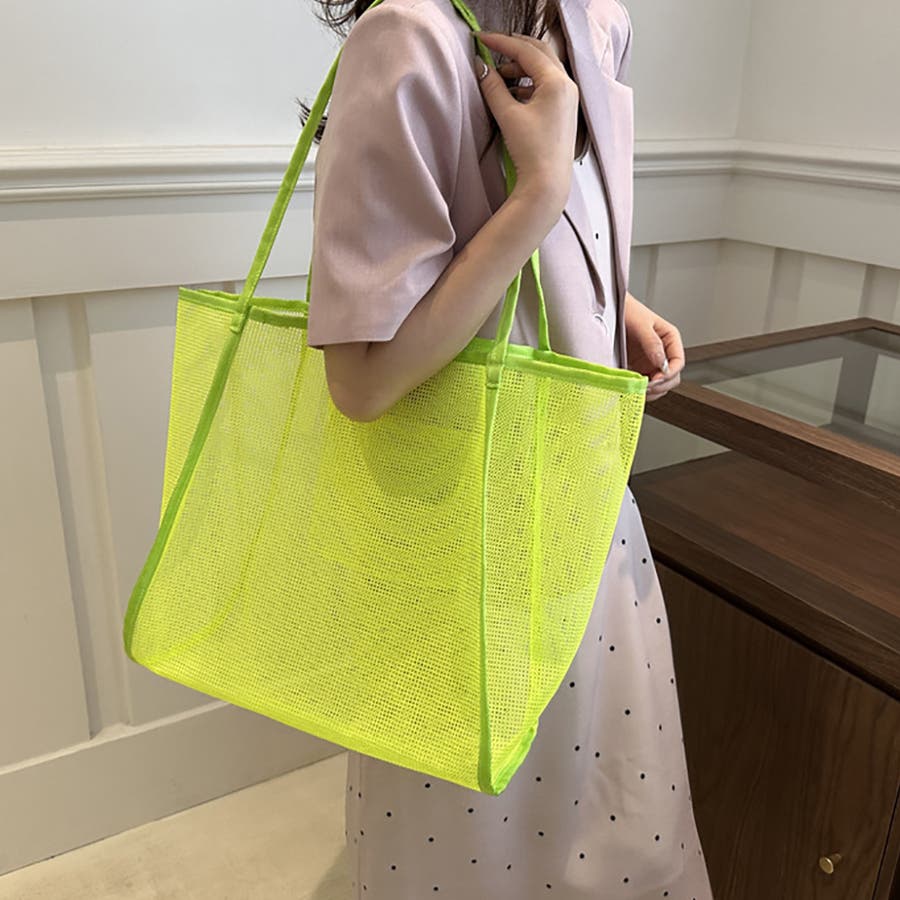 中が見えるバッグが欲しかったので沢山入るし、色々入れておいて、出す時にすぐわかるのでとても良いです。色も目立つ色欲しかったので良かった