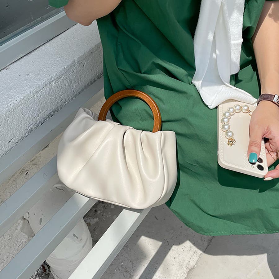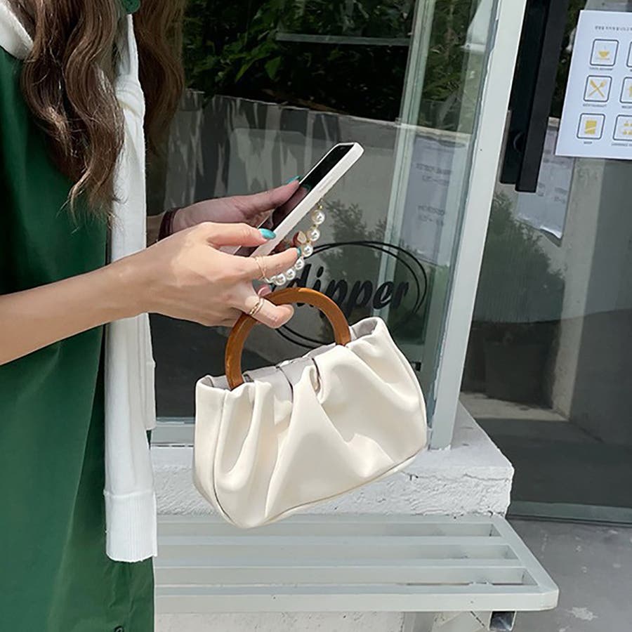 ウッドハンドルミニバッグ ショルダーバッグ ハンドバッグ 2way
