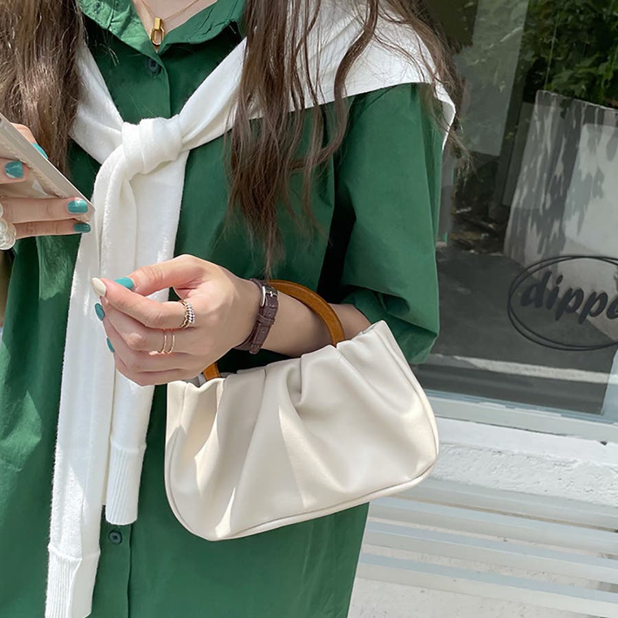 ・柔らかめのフェイクレザー生地に、タックディテールが上品で大人な印象