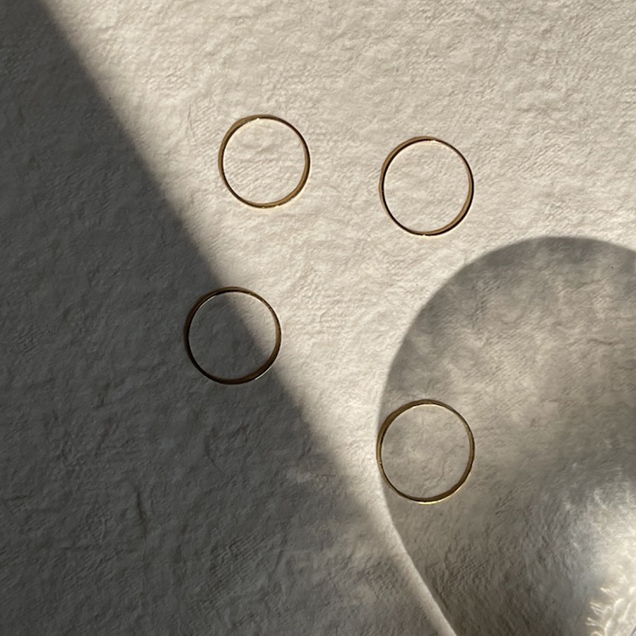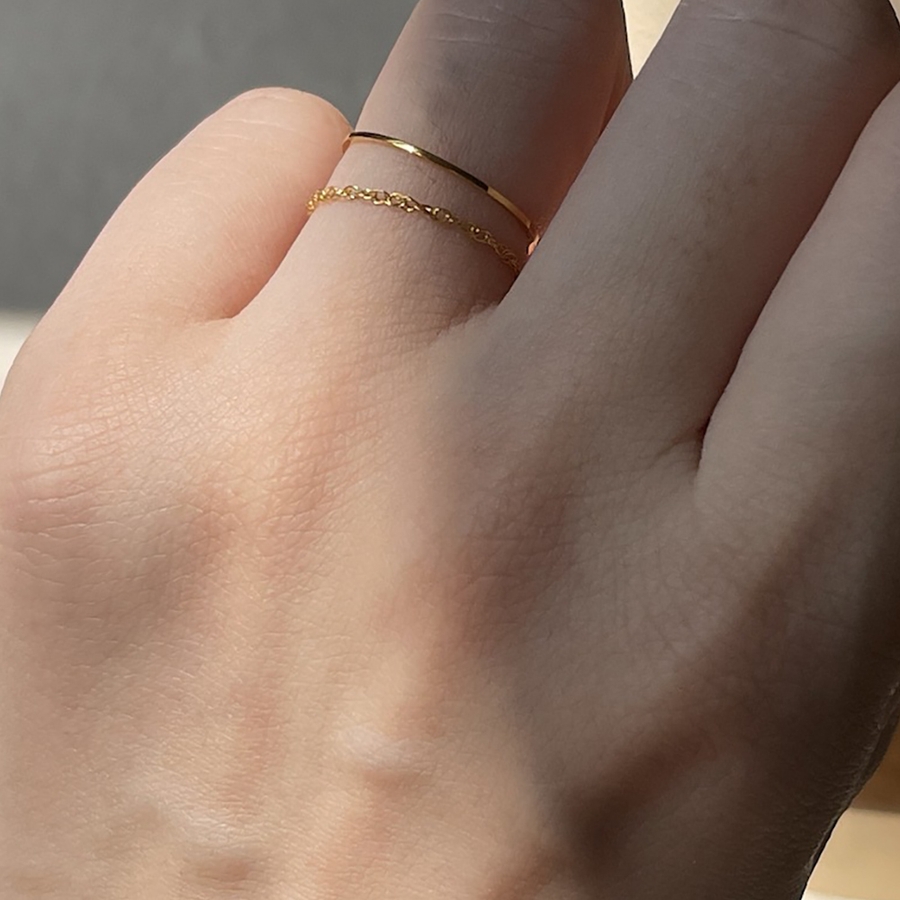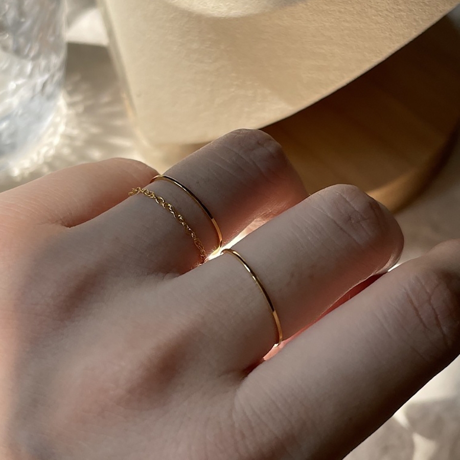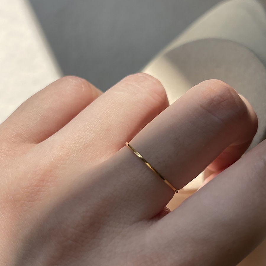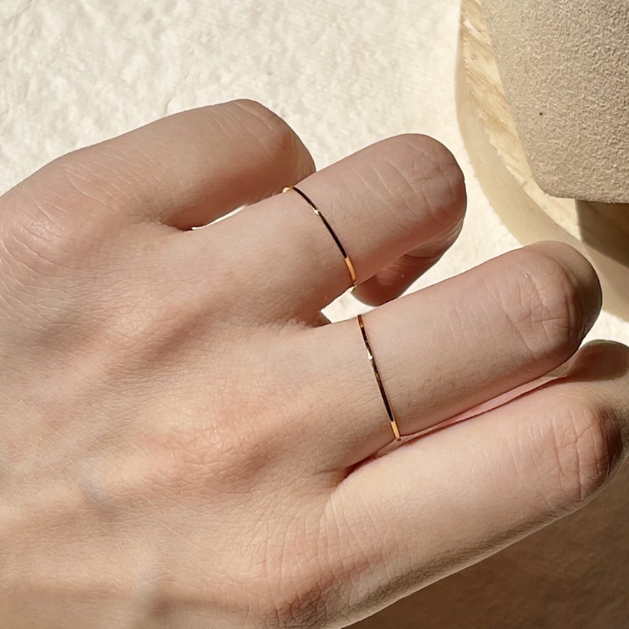 線径約0.5mmの細めに作られた華奢リングは重さを感じず、気軽に着けられるから重ね付けは勿論のこと、ファランジリングやピンキーリング等のお手持ちのリングのストッパーとしても幅広くお使いいただけるアイテムです。