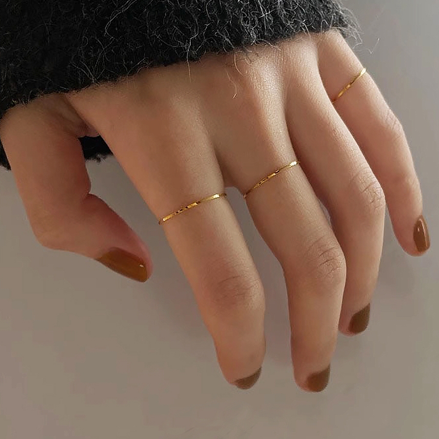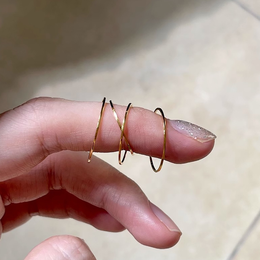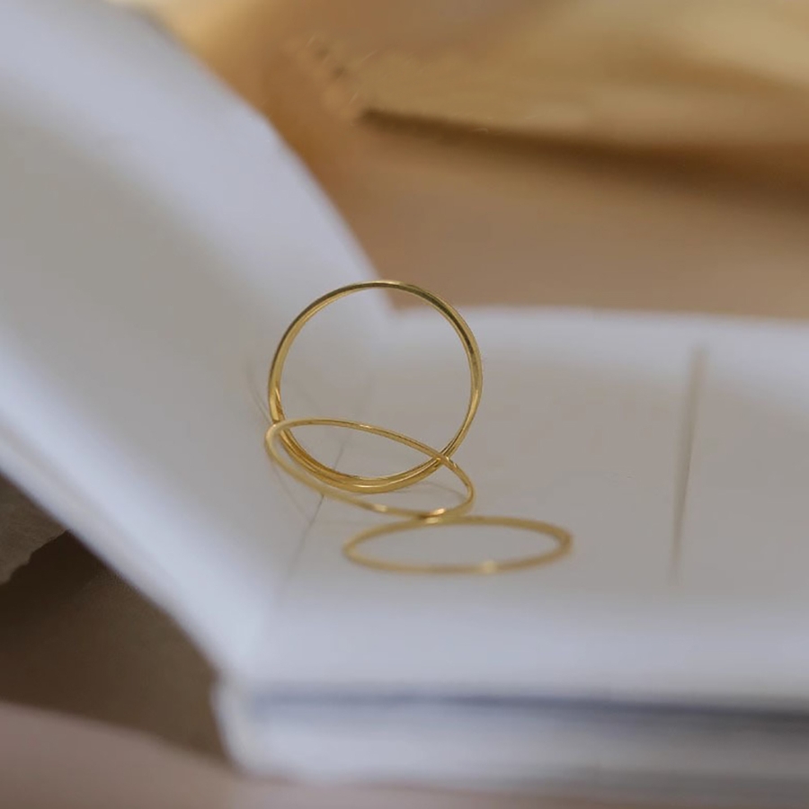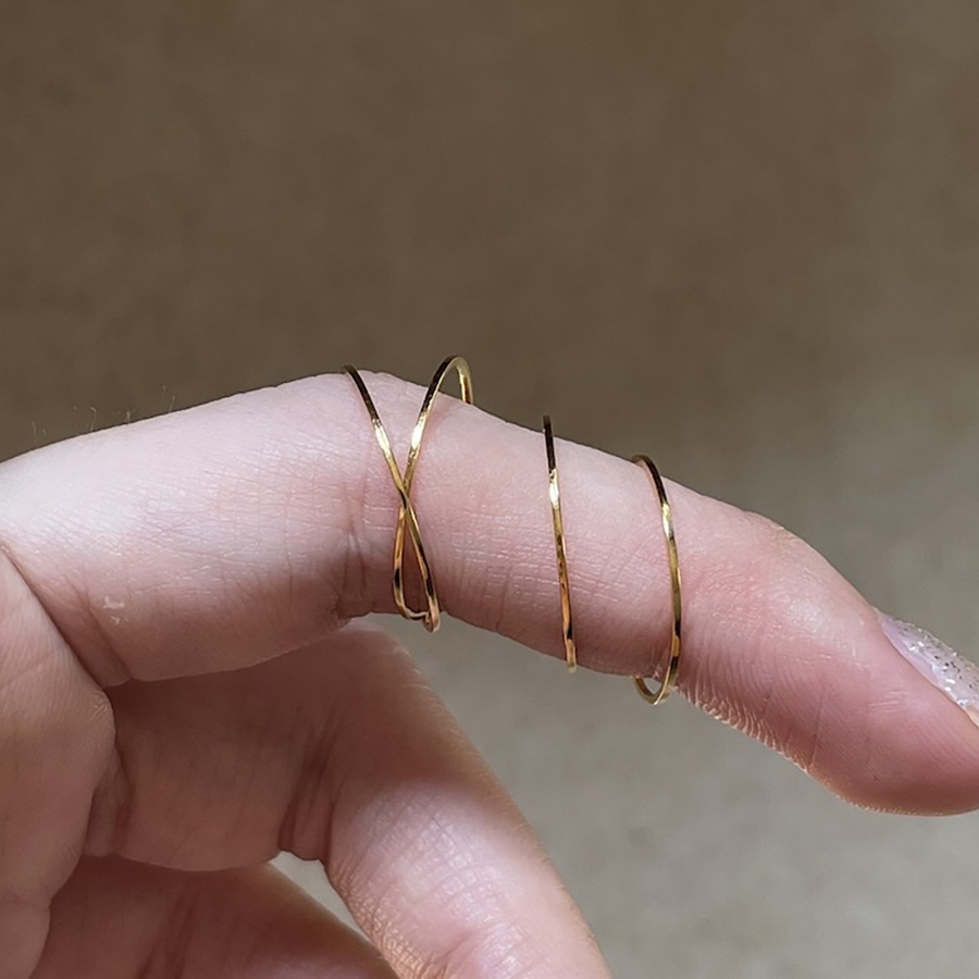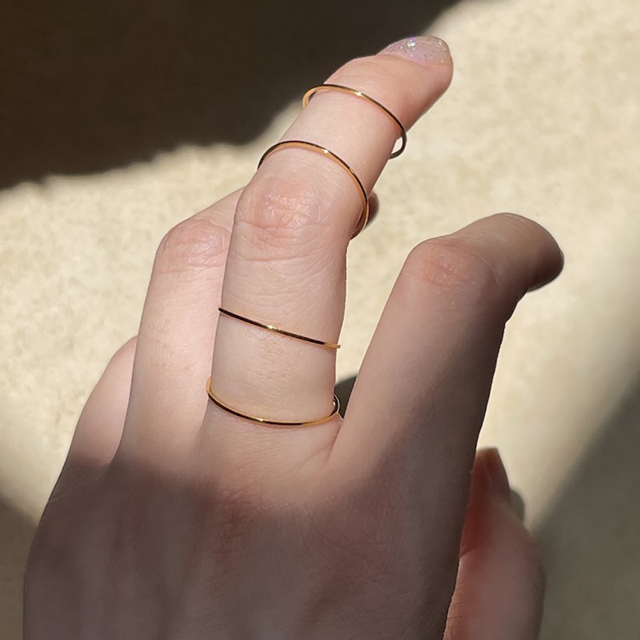 線径約0.5mmの細めに作られた華奢リングは重さを感じず、気軽に着けられるから重ね付けは勿論のこと、ファランジリングやピンキーリング等のお手持ちのリングのストッパーとしても幅広くお使いいただけるアイテムです。