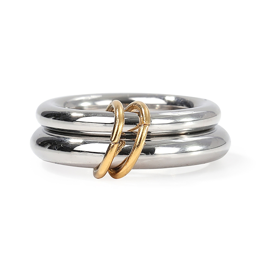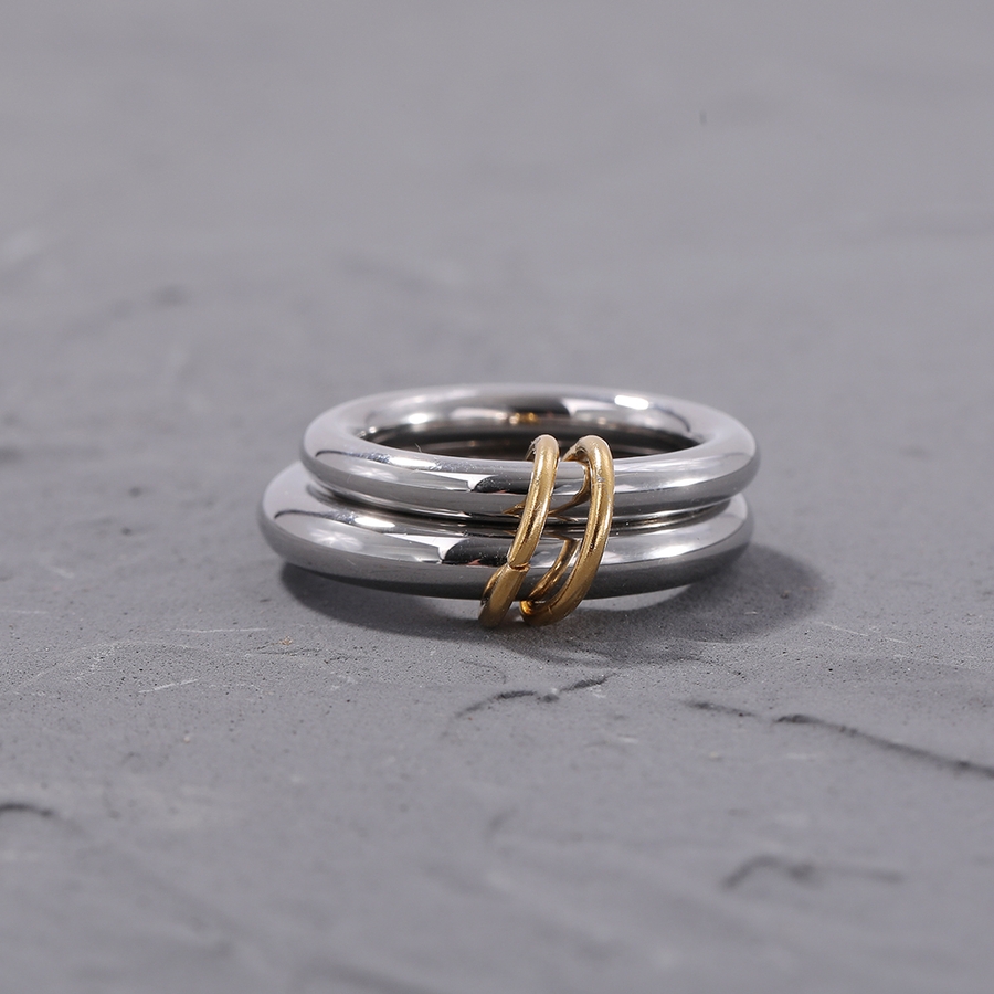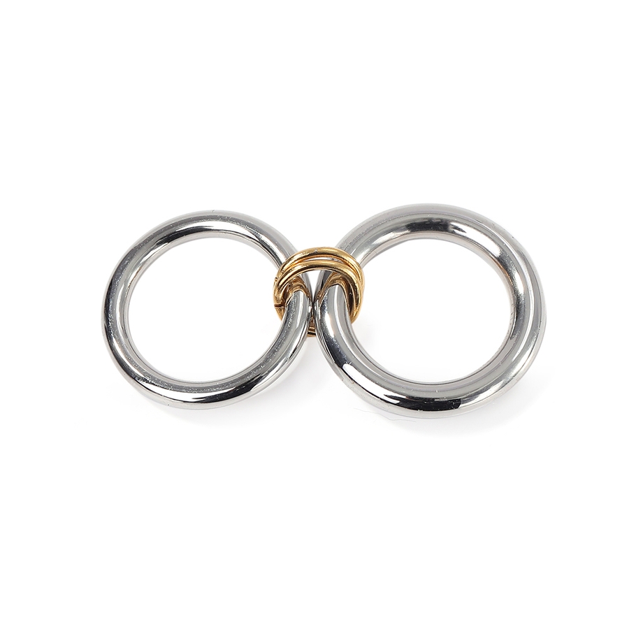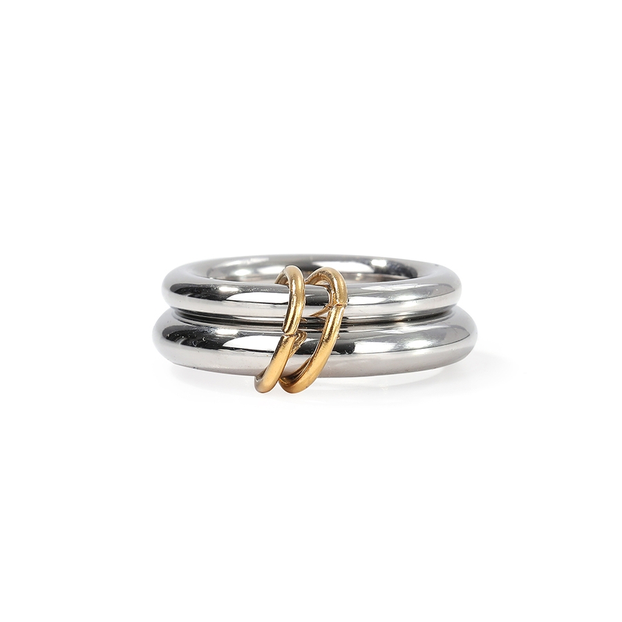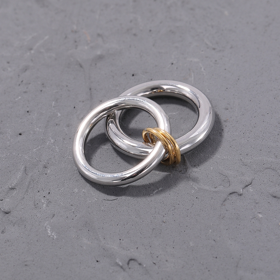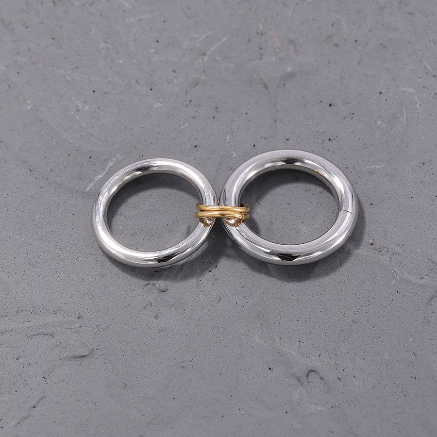 異なる太さのリングを2連にさせた、こなれ感のあるお洒落なコネクテッドリング。
