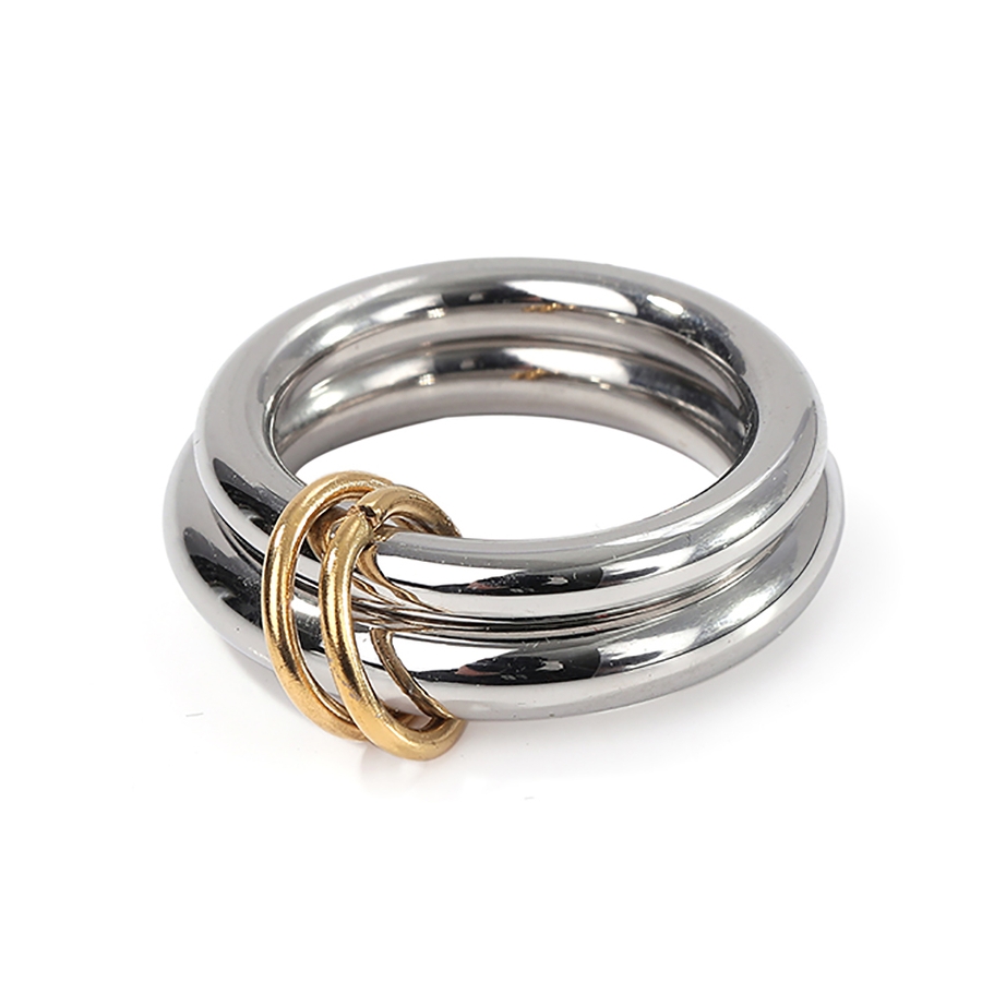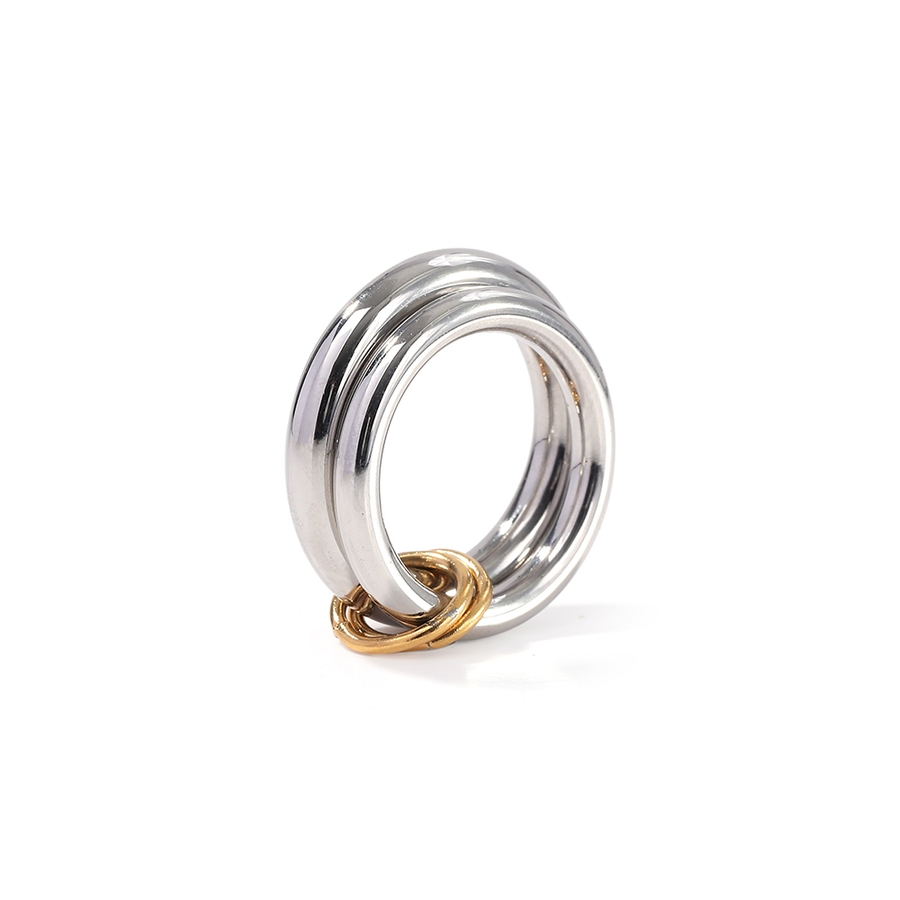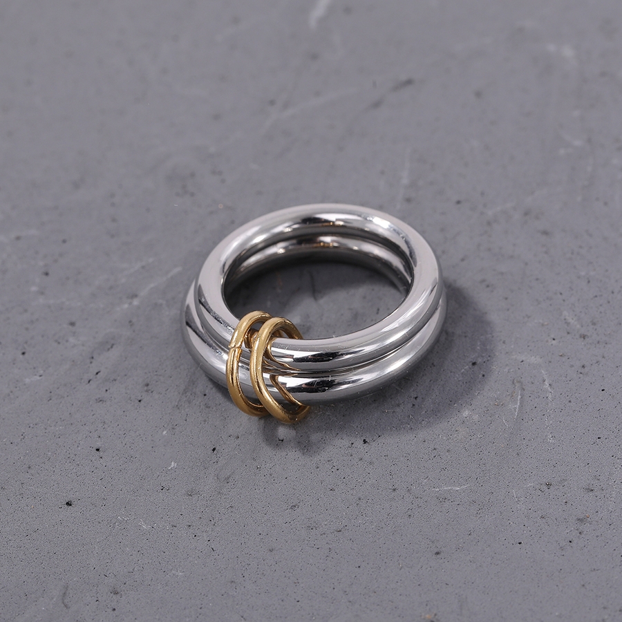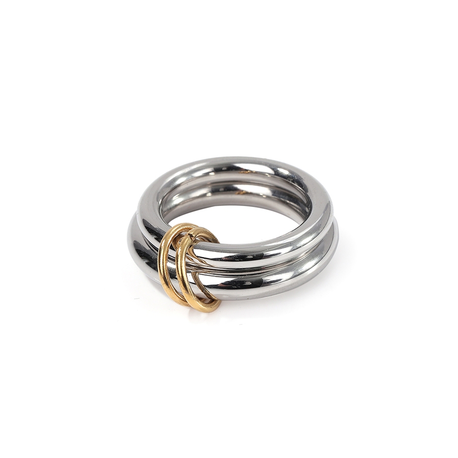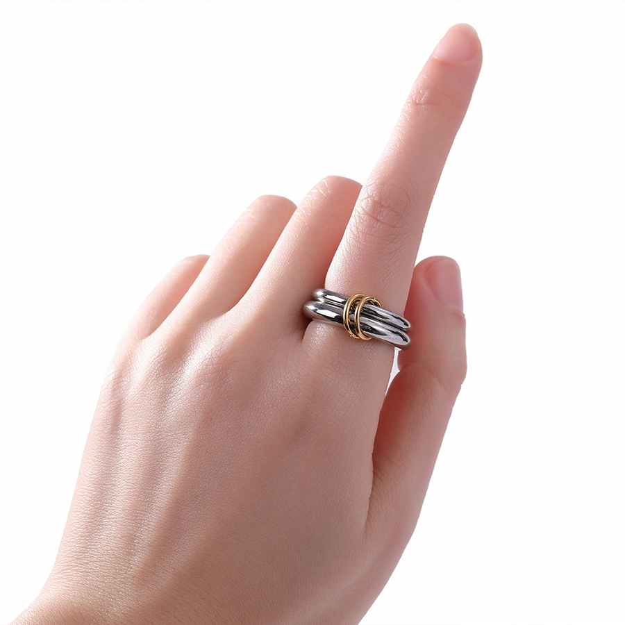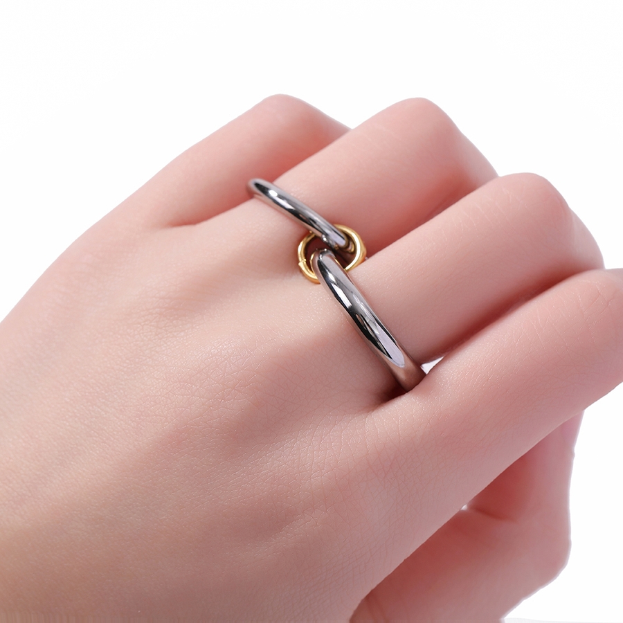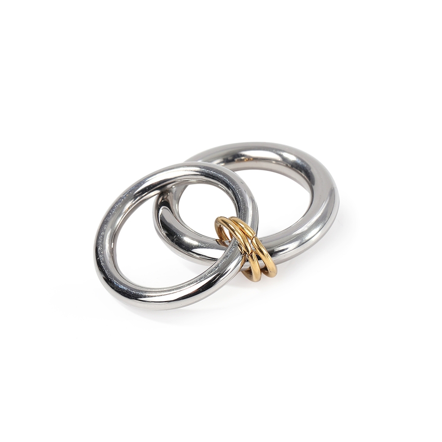 異なる太さのリングを2連にさせた、こなれ感のあるお洒落なコネクテッドリング。