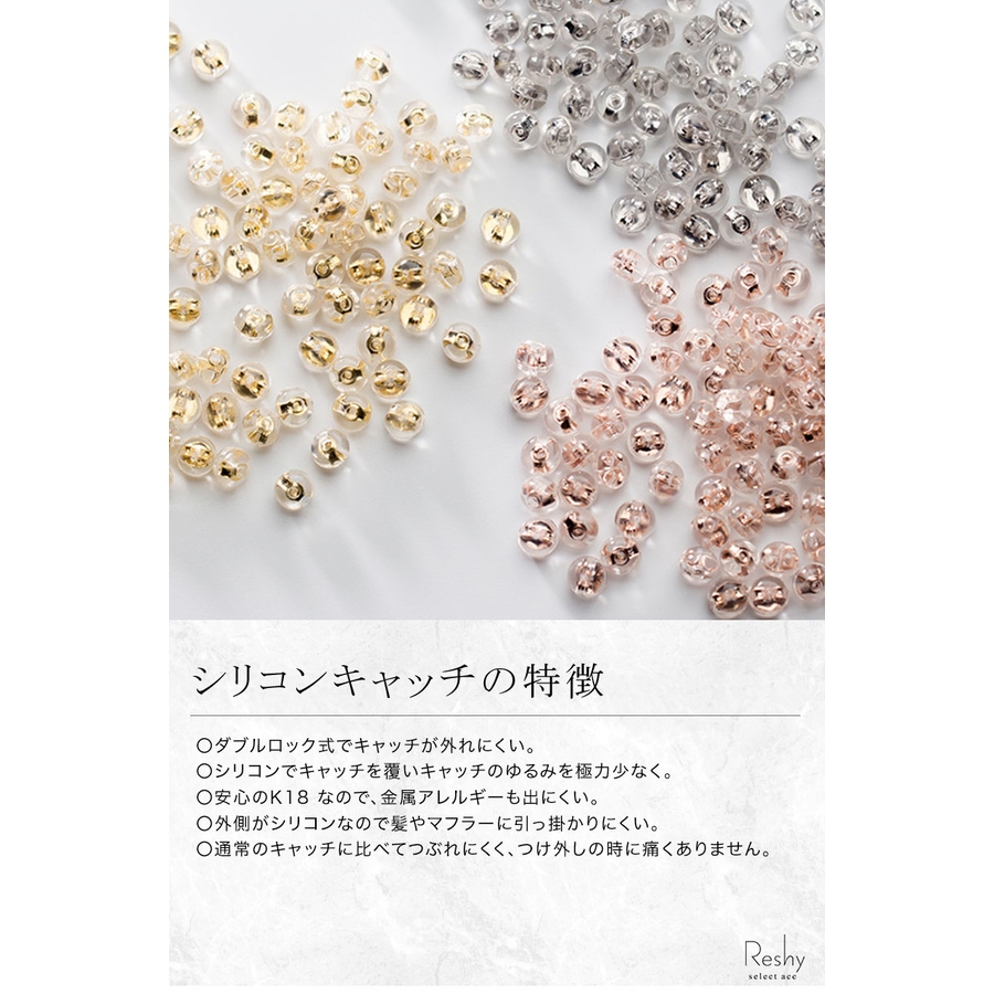 〇通常のキャッチに比べてつぶれにくく、つけ外しの時に痛くありません。