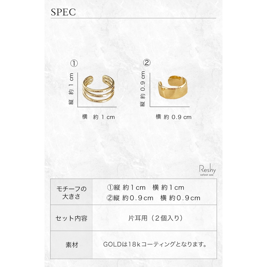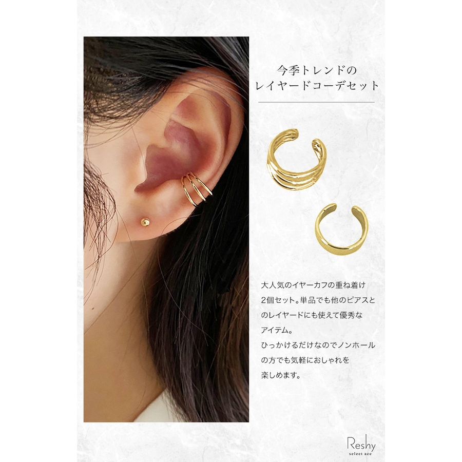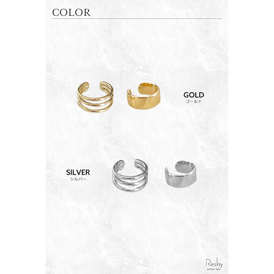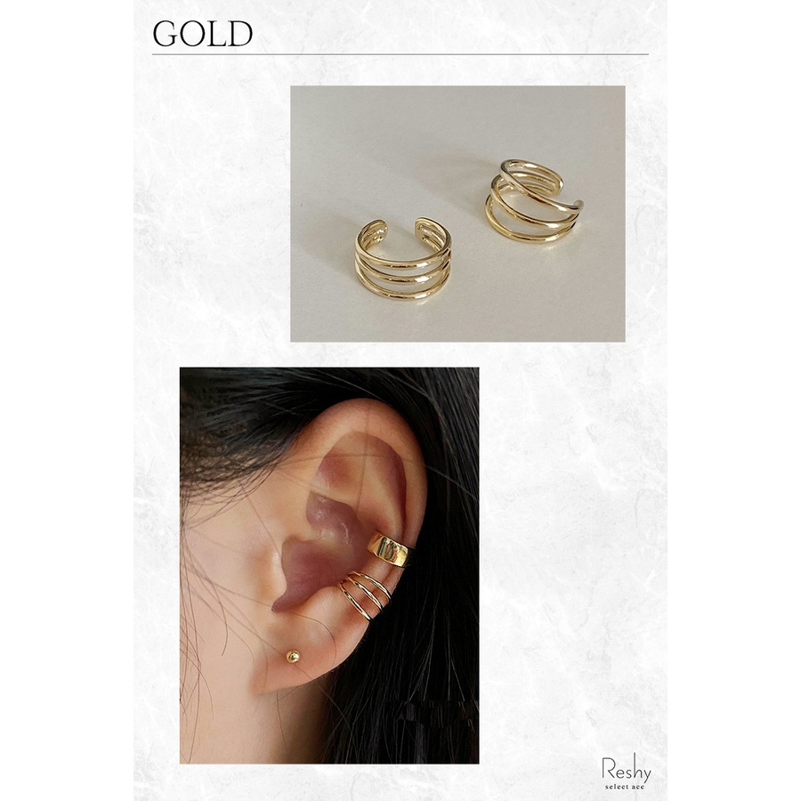 イヤーカフ レディース 小さい ゴールド シルバー 3連 太め 2点セット