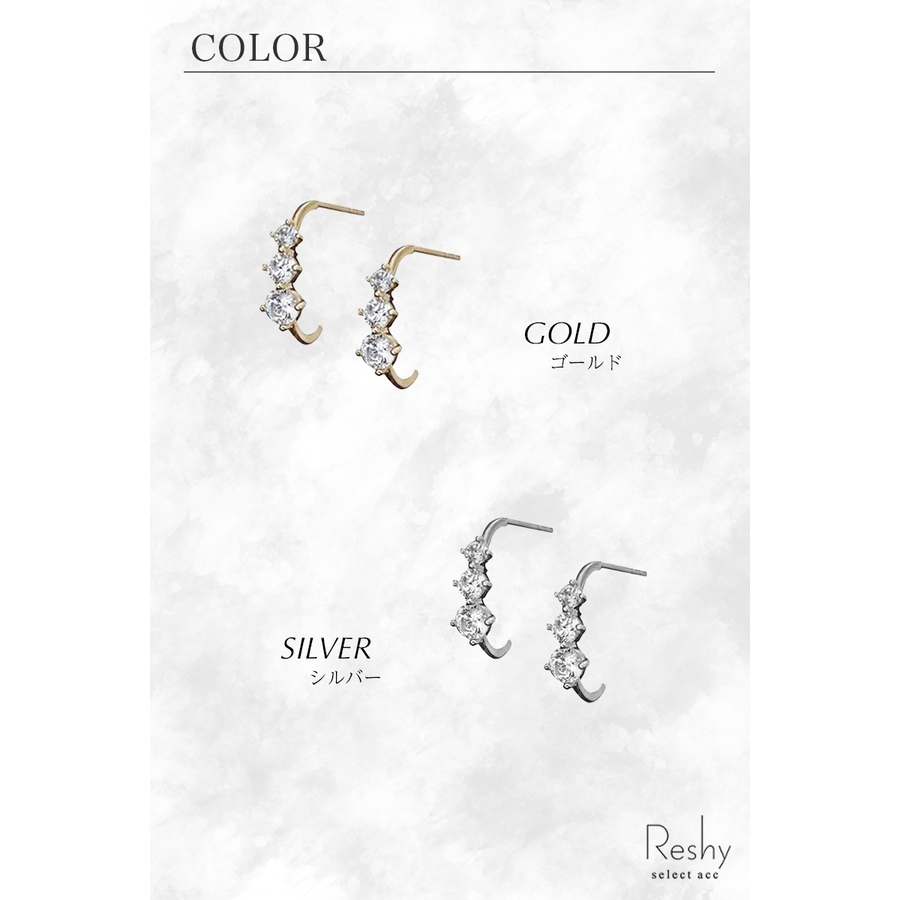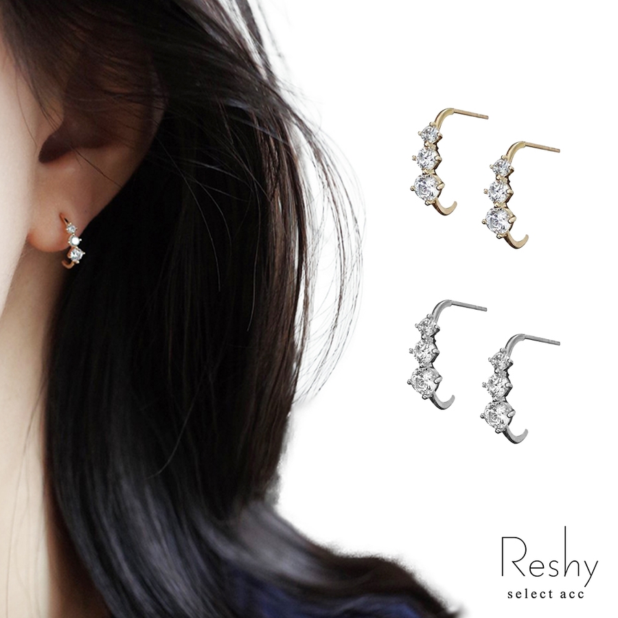 アーチ状に並んだ3連ストーンがお洒落なピアスです。