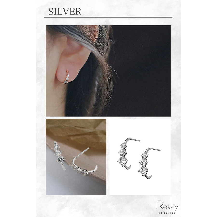 ピアス レディース 18k ゴールド シルバー s925 ライン アーチ シンプル