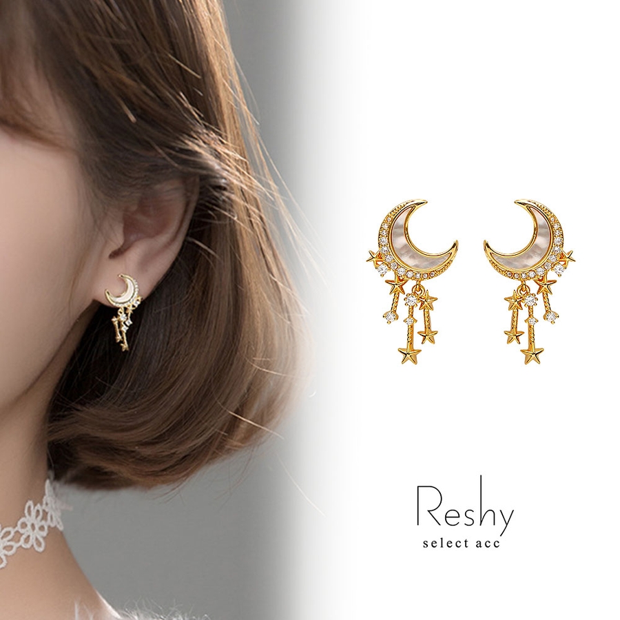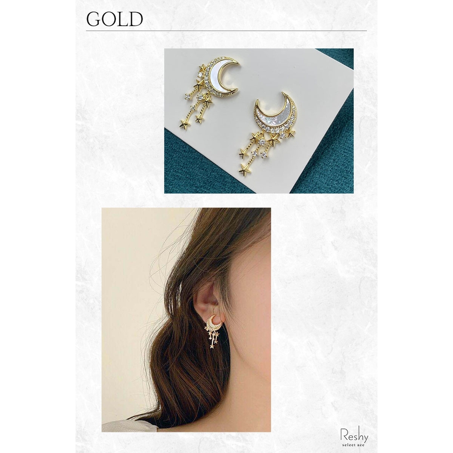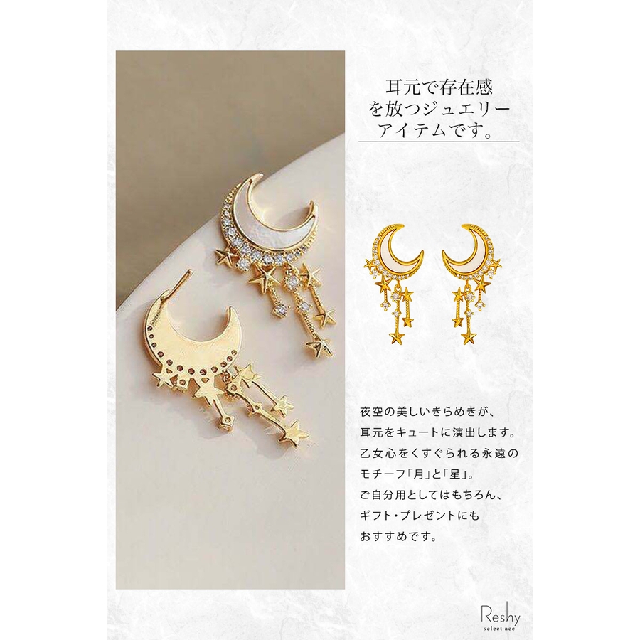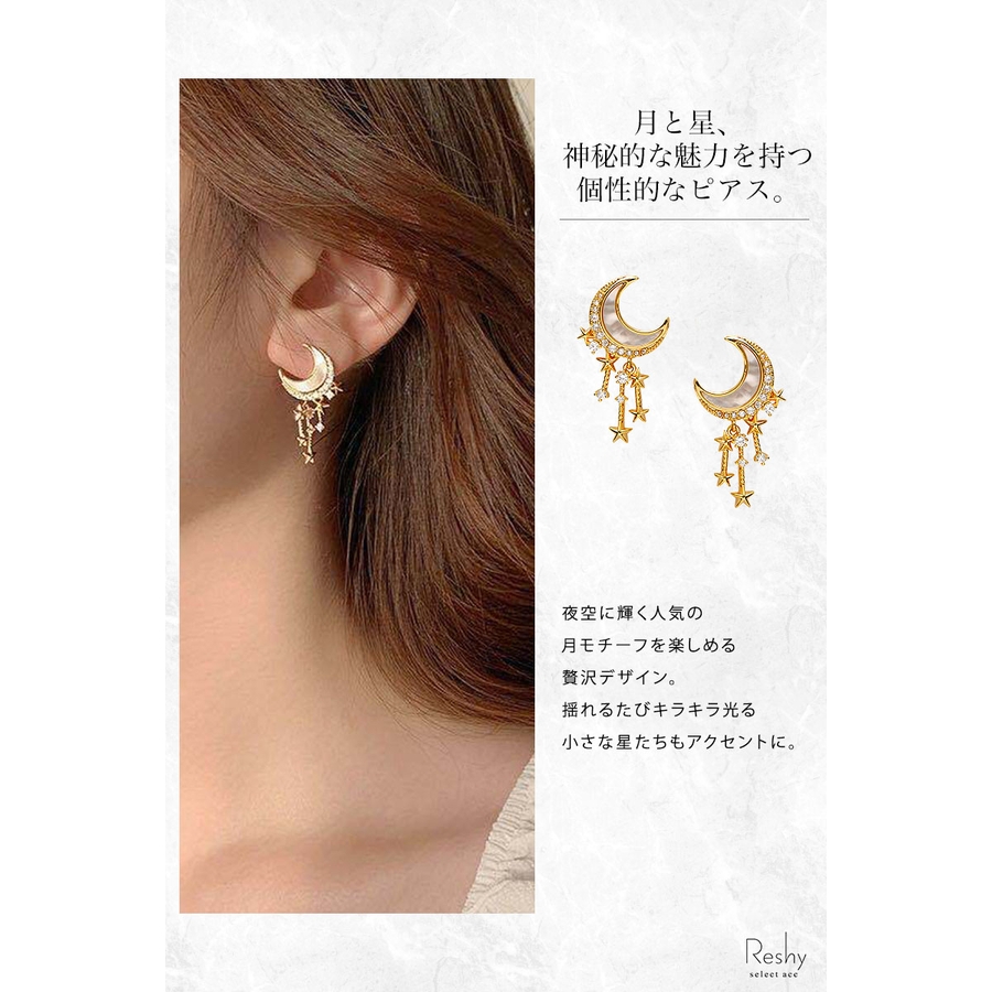 月と星、神秘的な魅力を持つ個性的なピアス。