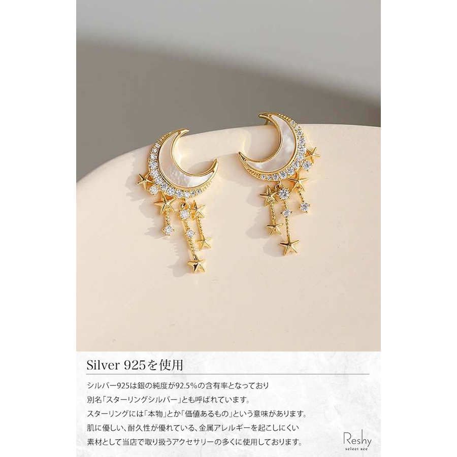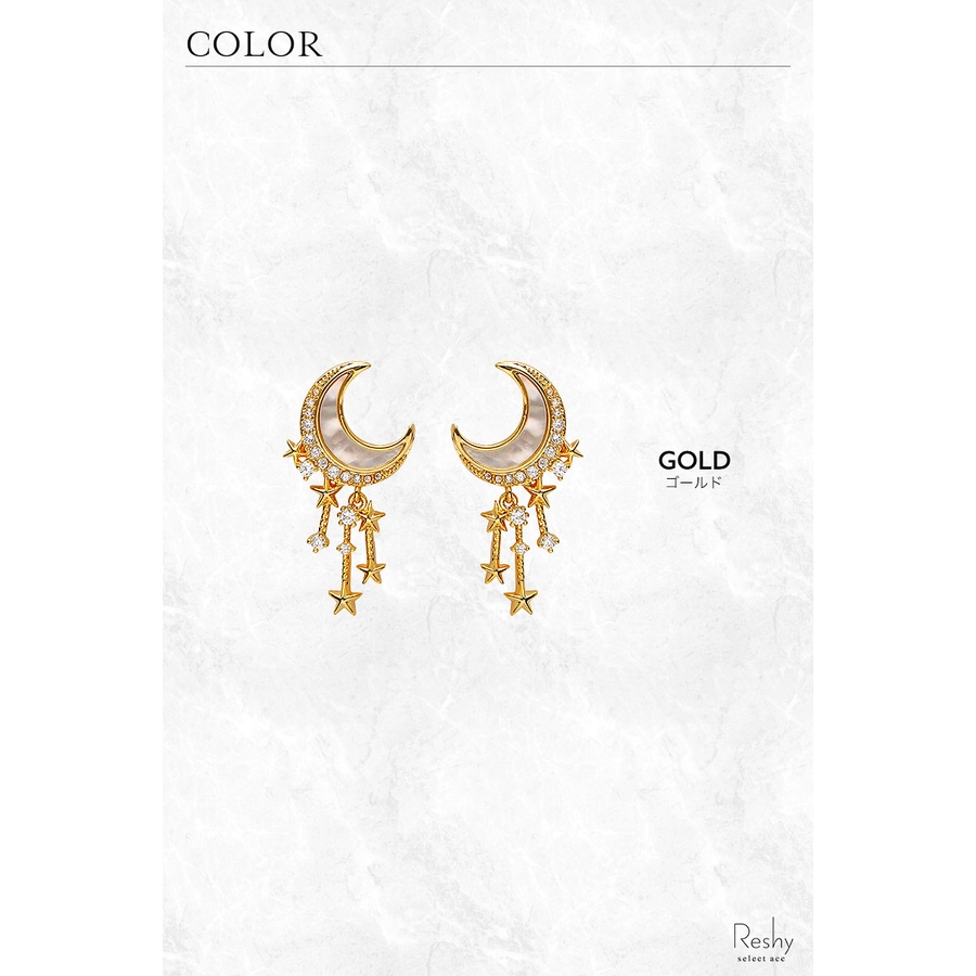 レディース ピアス ムーンスター 大人 上品 エレガント 華奢 ブランド 揺れる 18k