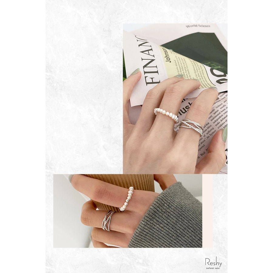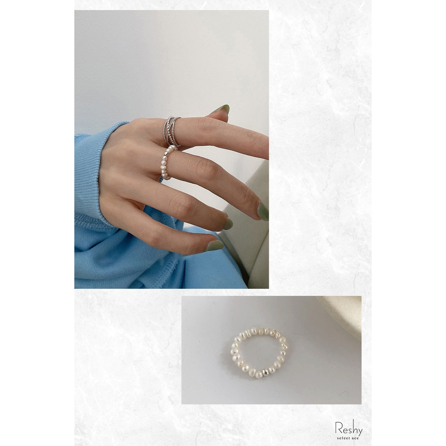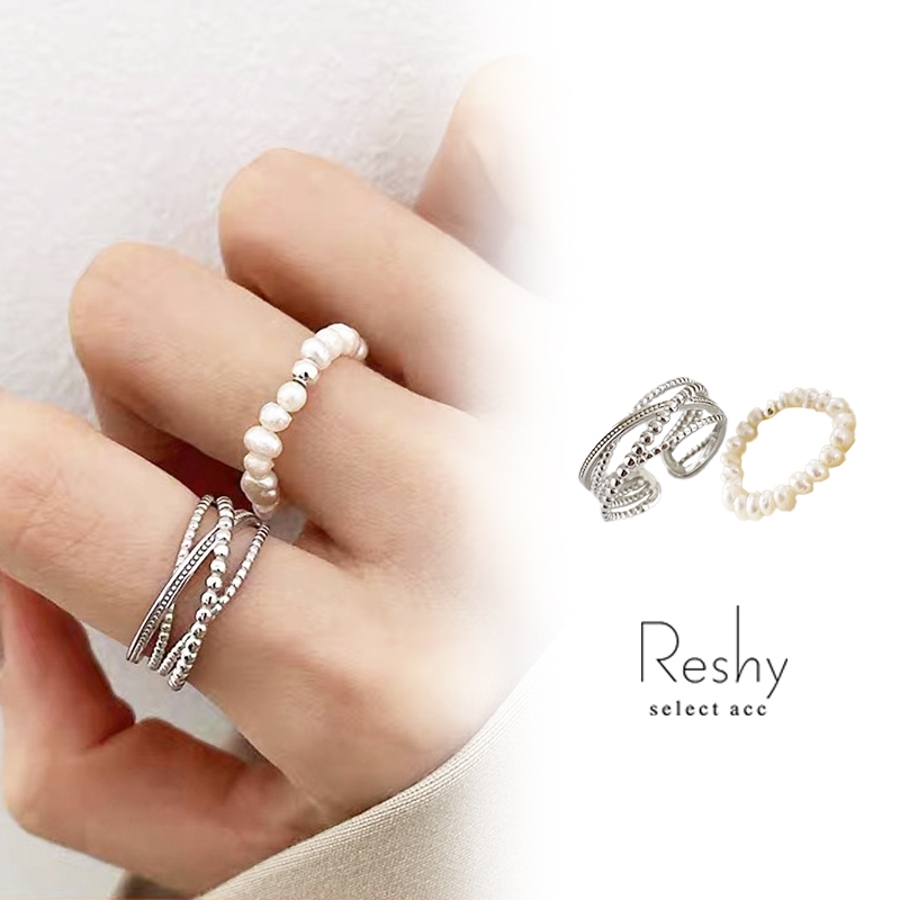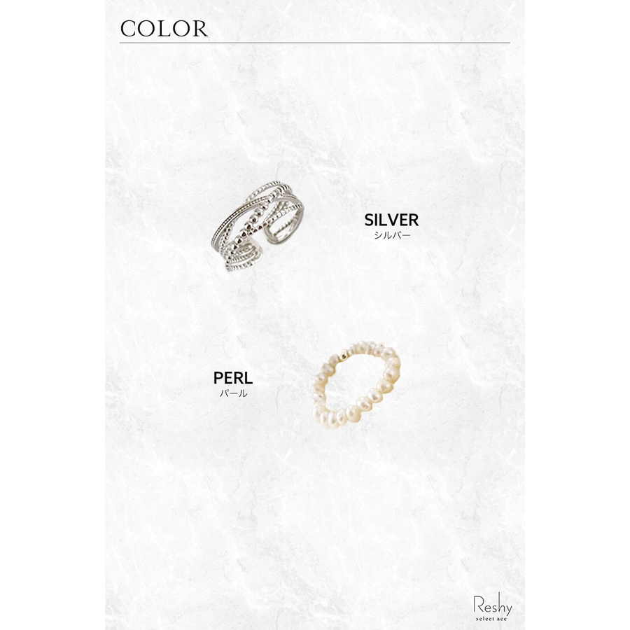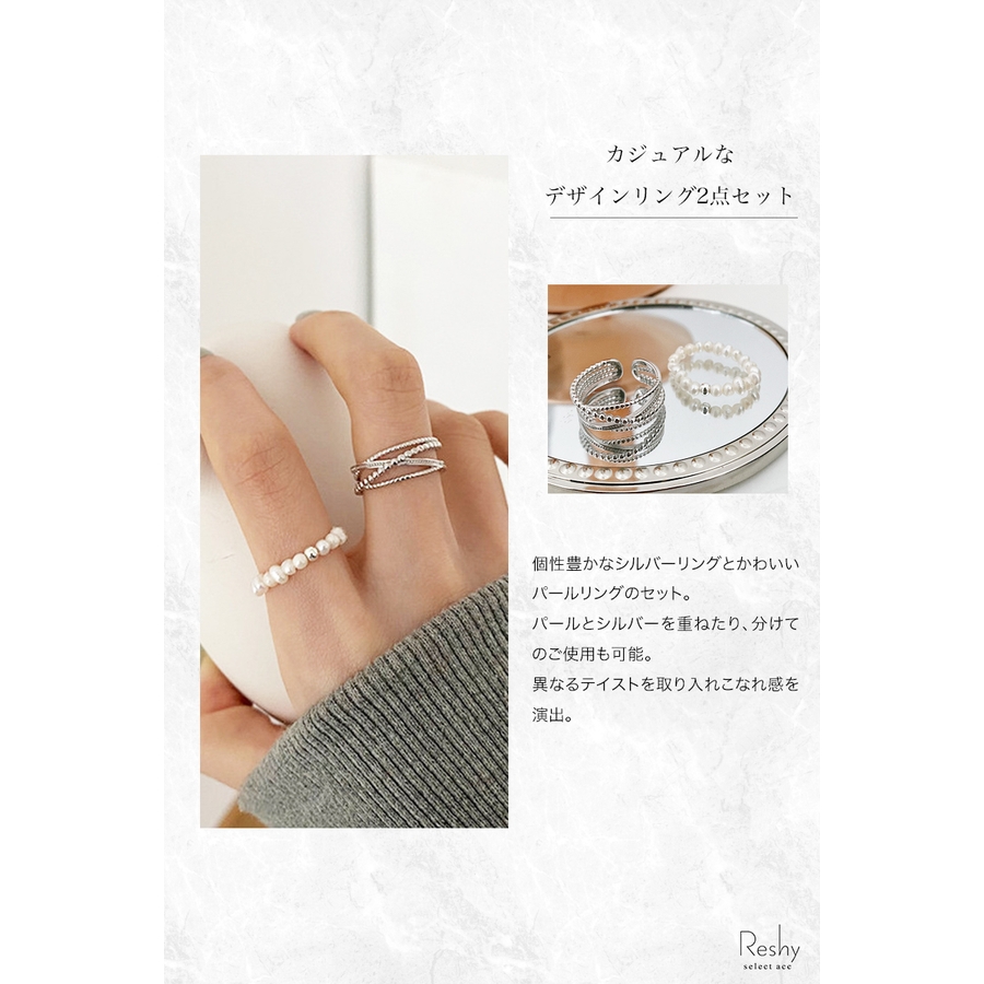 個性豊かなシルバーリングとかわいいパールリングのセット。