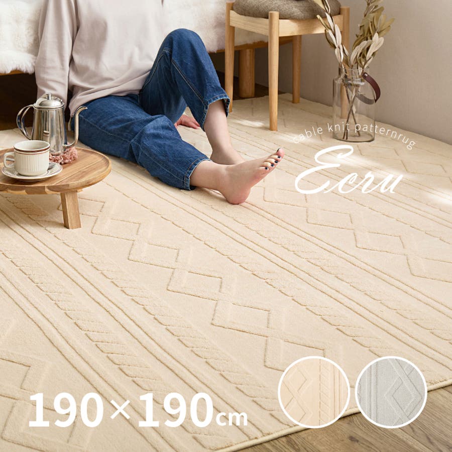 手洗いできるケーブルニットラグ エクリュ 約190×190cm