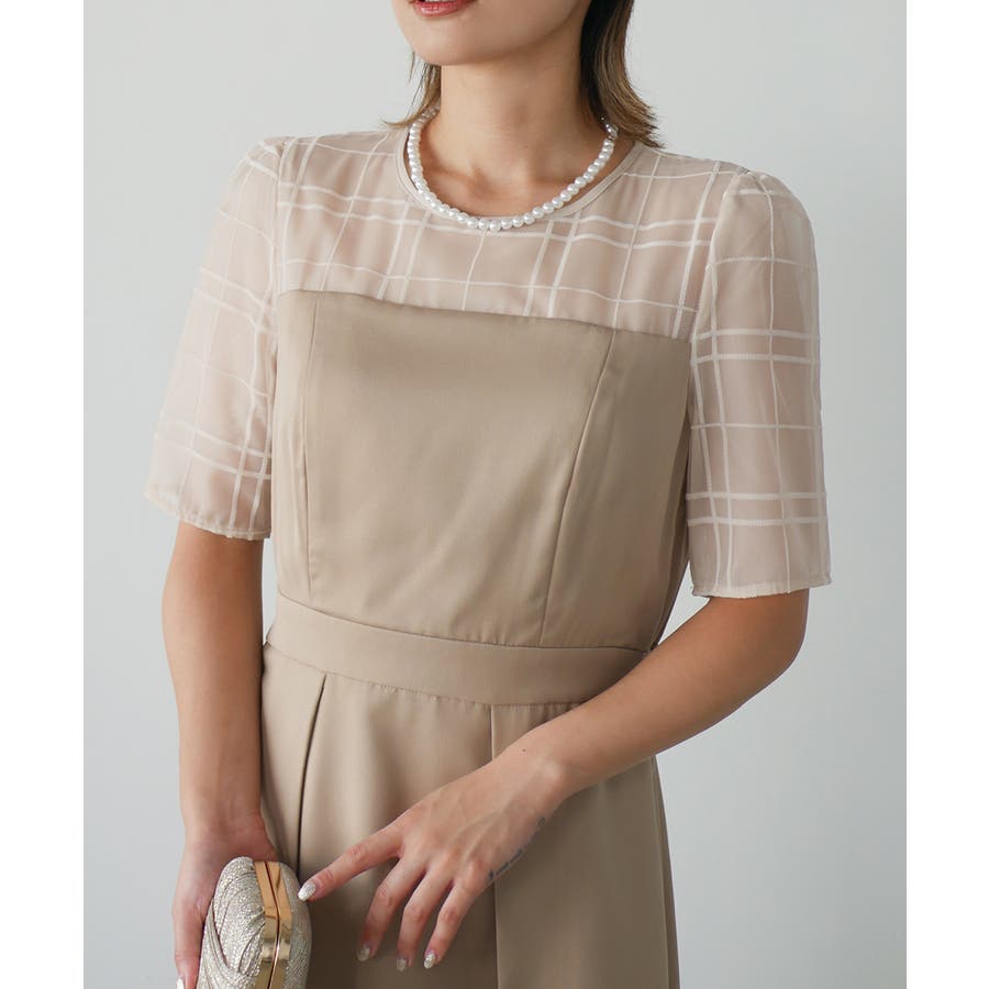 チェック柄レースが知的なアクセントを加えるペンシルドレス。