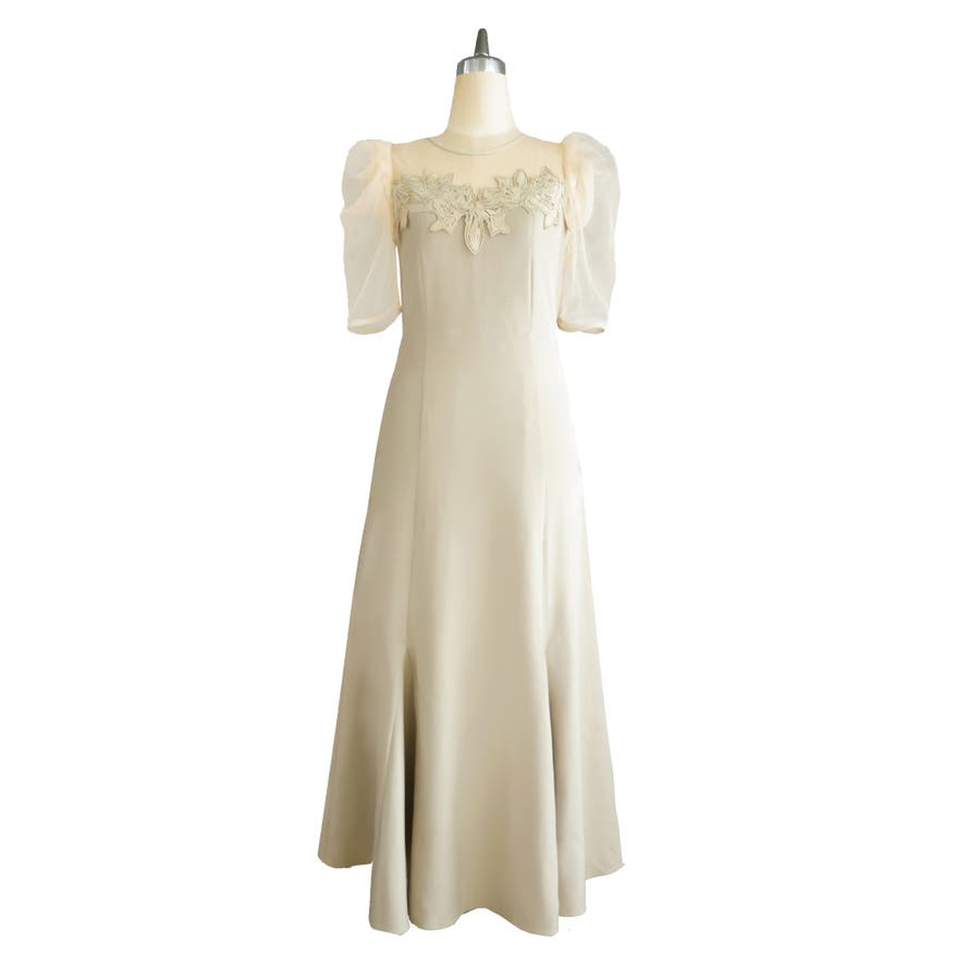 着脱はバックファスナーで、ヘアメイクを崩さずご着用頂けます。