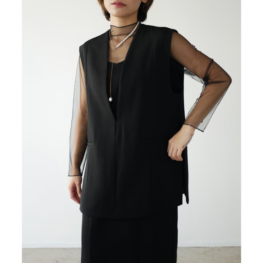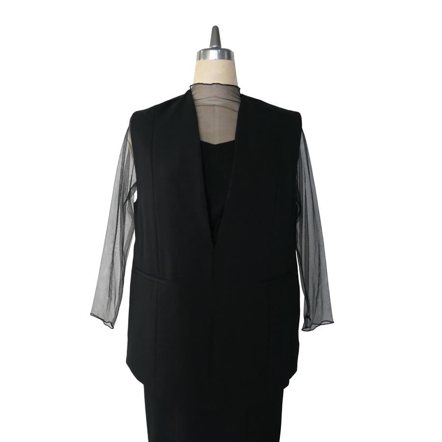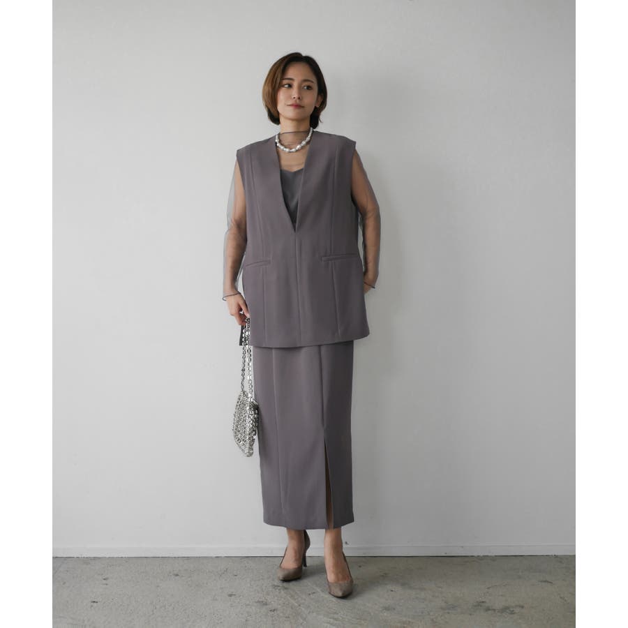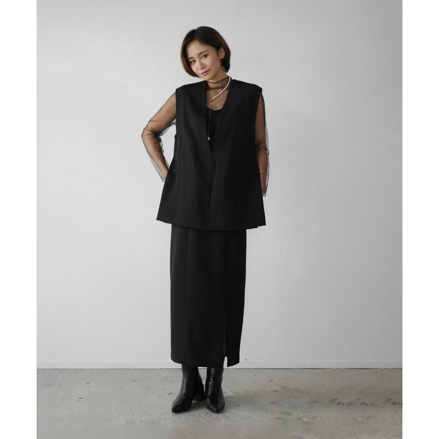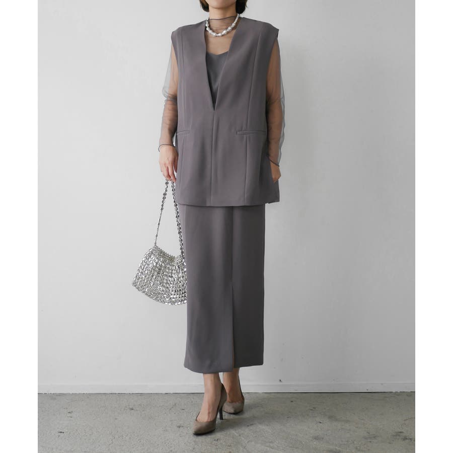 ベストを羽織ることで、ウエスト周りを隠し体型カバーもしてくれます。