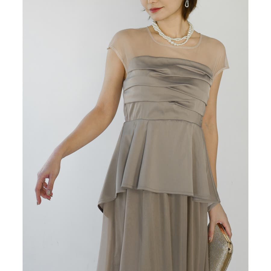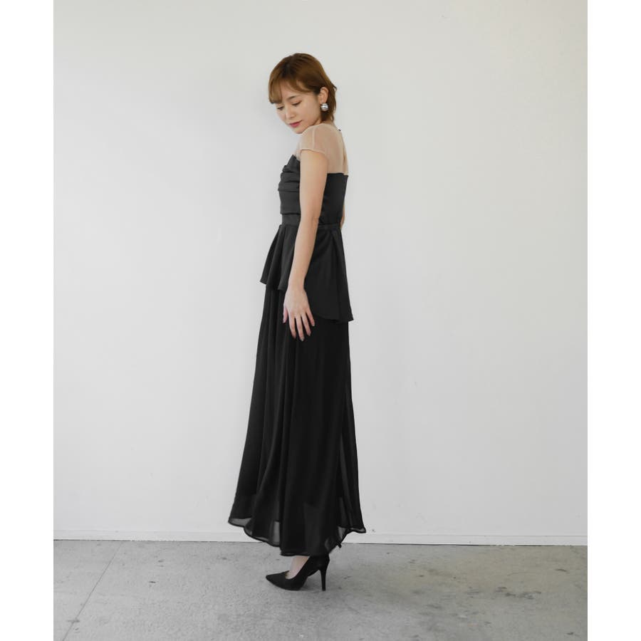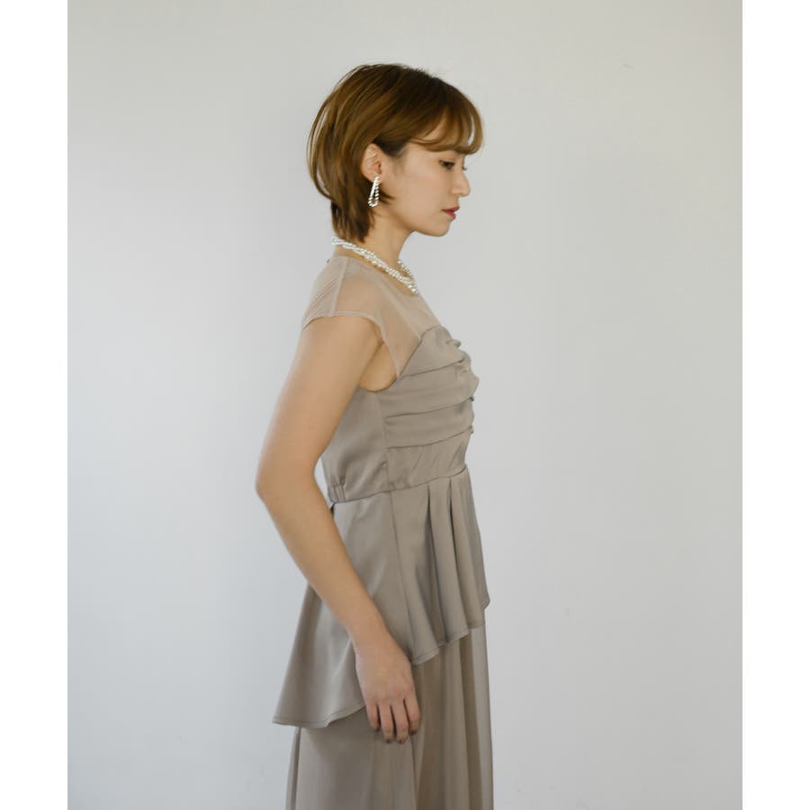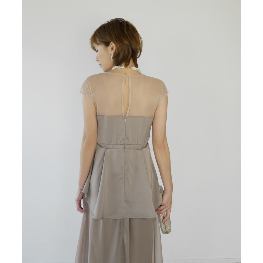 また、素肌をさりげなく感じさせてくれるチュール袖が付き、羽織入らずでドレスアップしていただけます。
