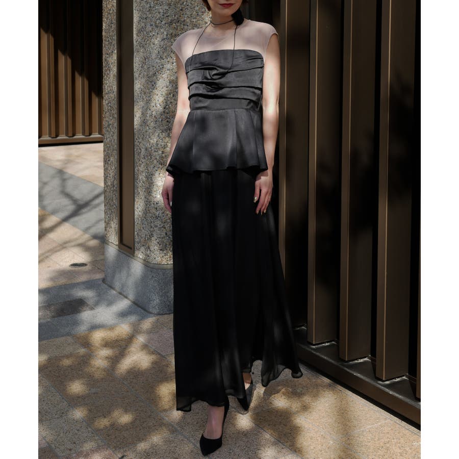 ビスチェ×スカートに見える自由気ままな異素材使いが印象的なドレスワンピース。
