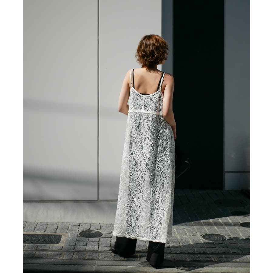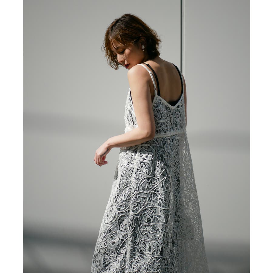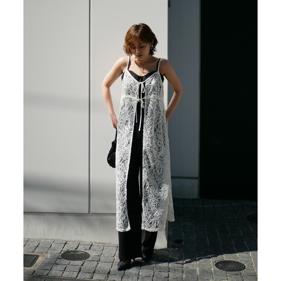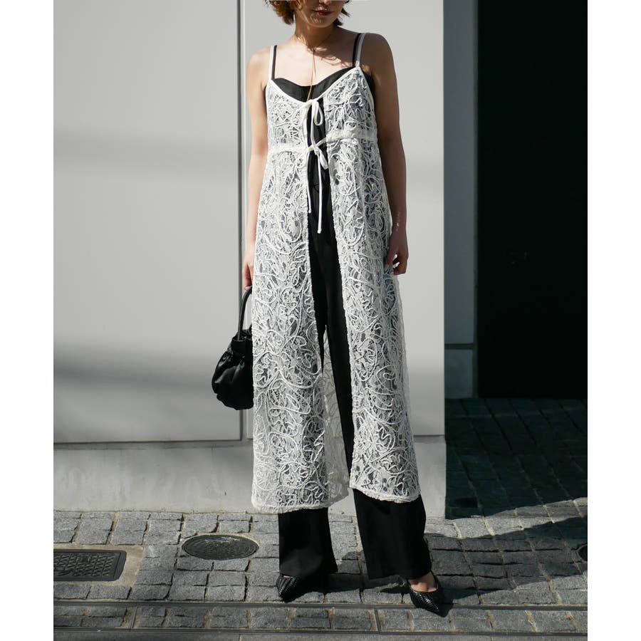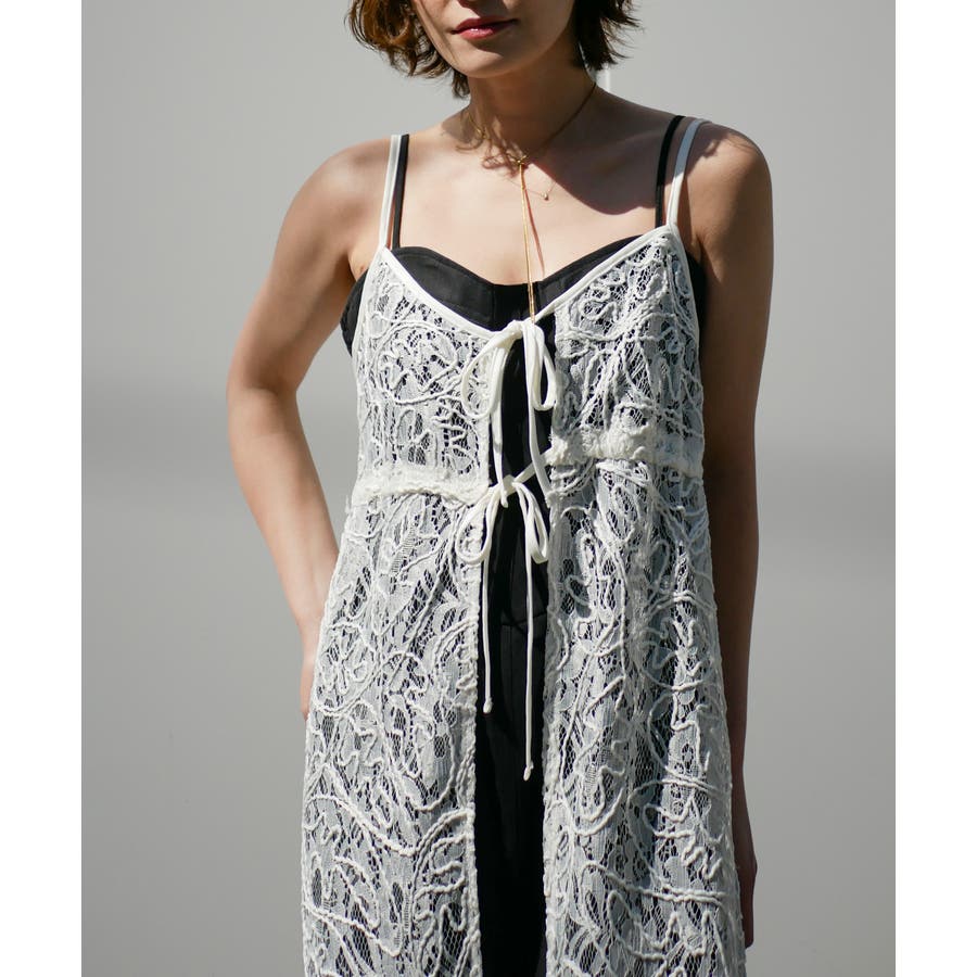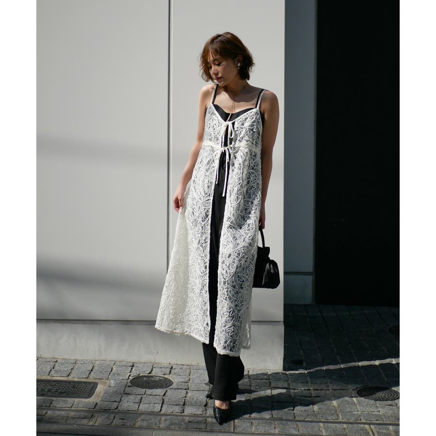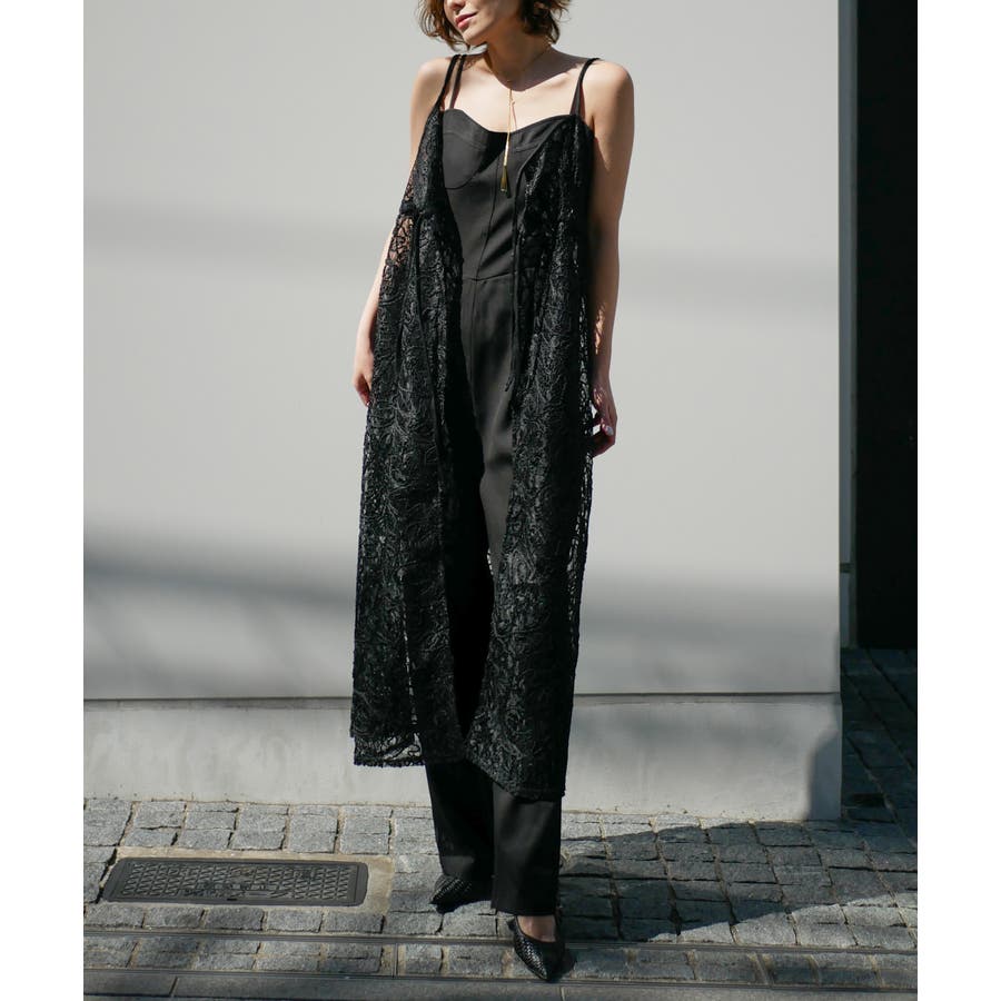 クラシカルかつ端正なジレも、ややハリ感のあるコードレースで仕上げることで高級感かつドラマティックなシルエットを発揮。