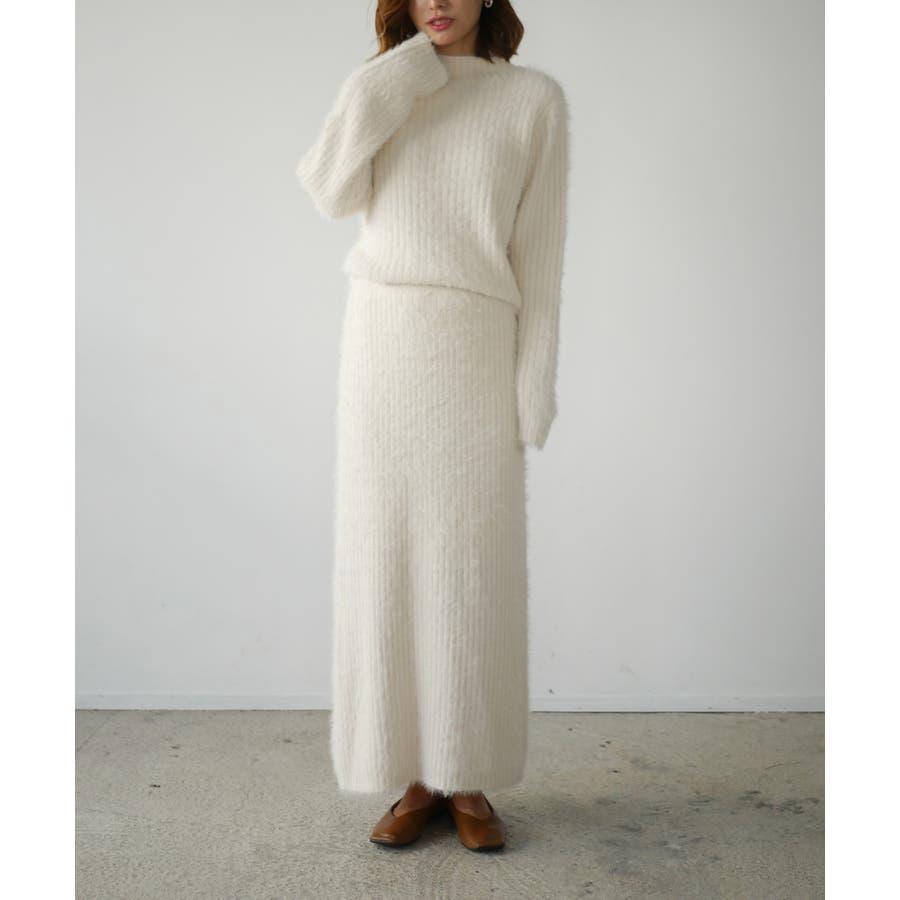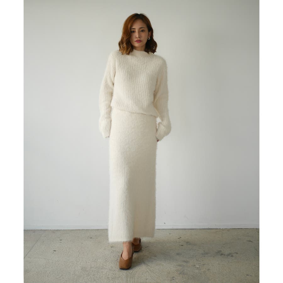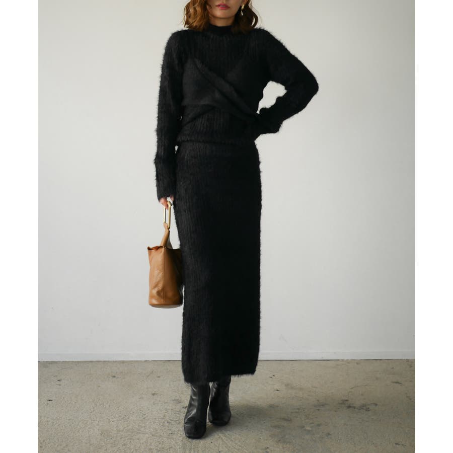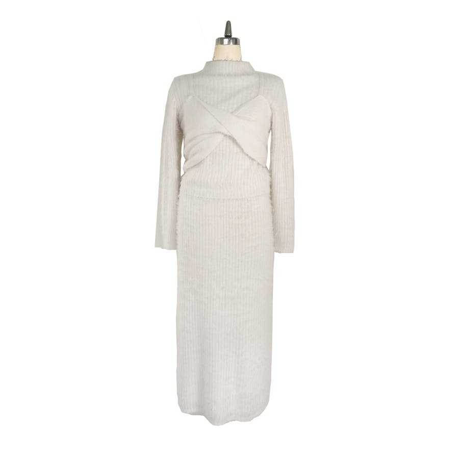 フェザーニットのふんわり感が女性らしさを引き立てるトップス・ビスチェ・スカートの豪華3点セット。
