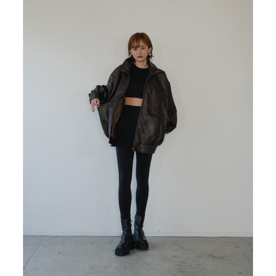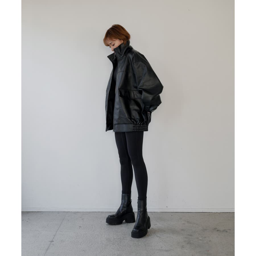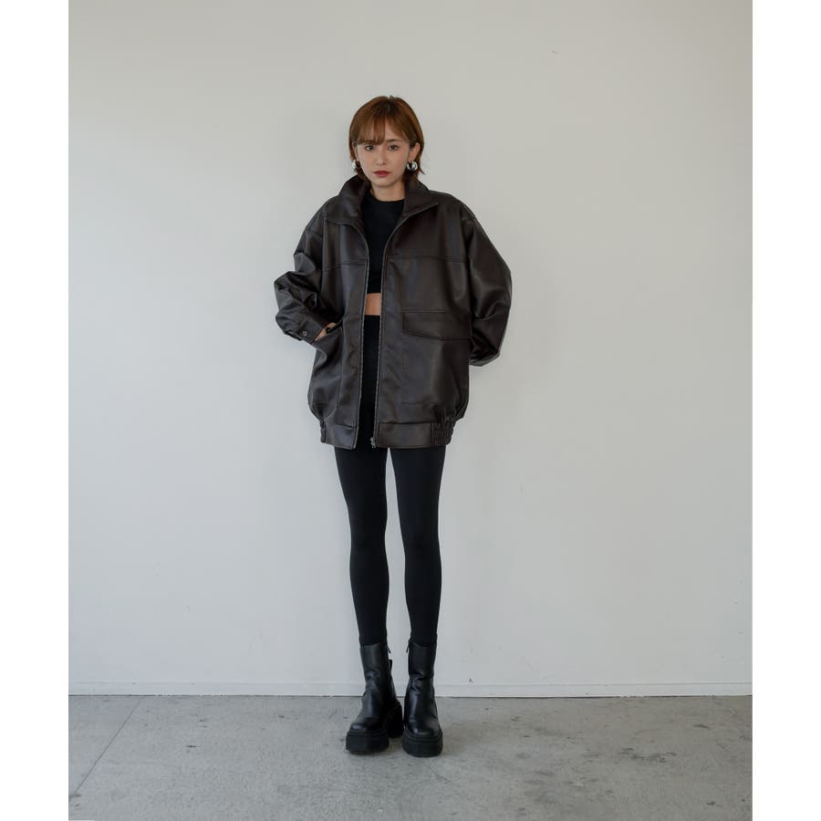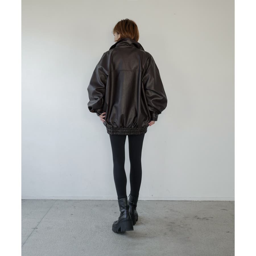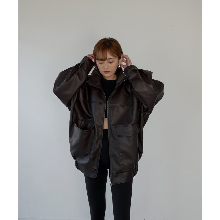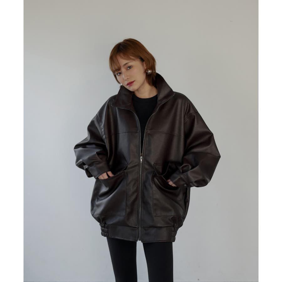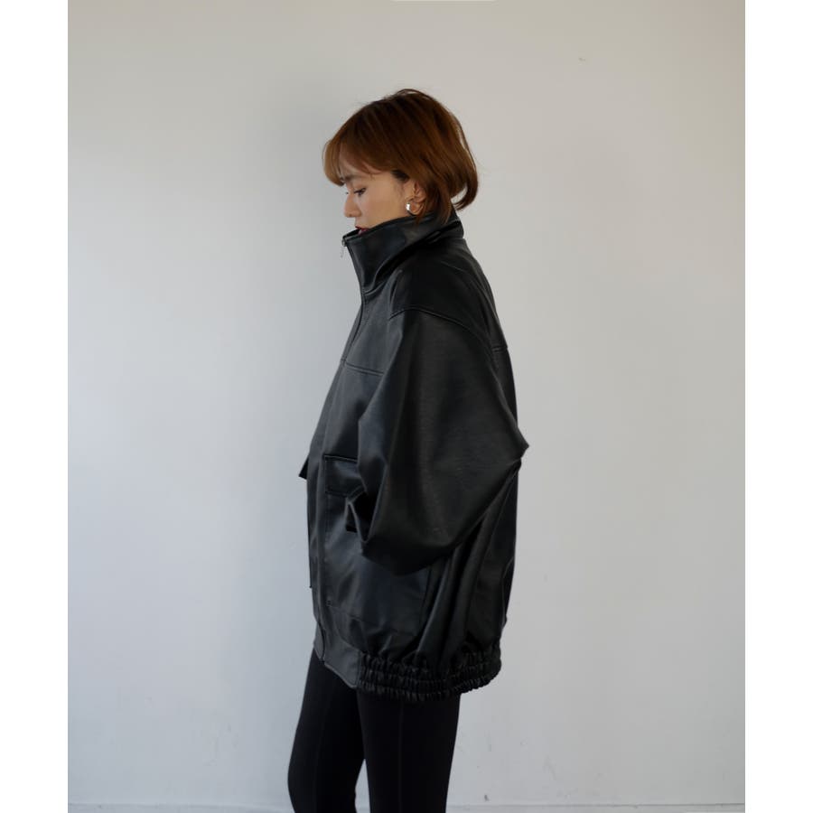 ドロップショルダーでゆるっとしたサイズ感が可愛らしく、ジップを全部閉めればスタンドカラーにもなる仕様に。