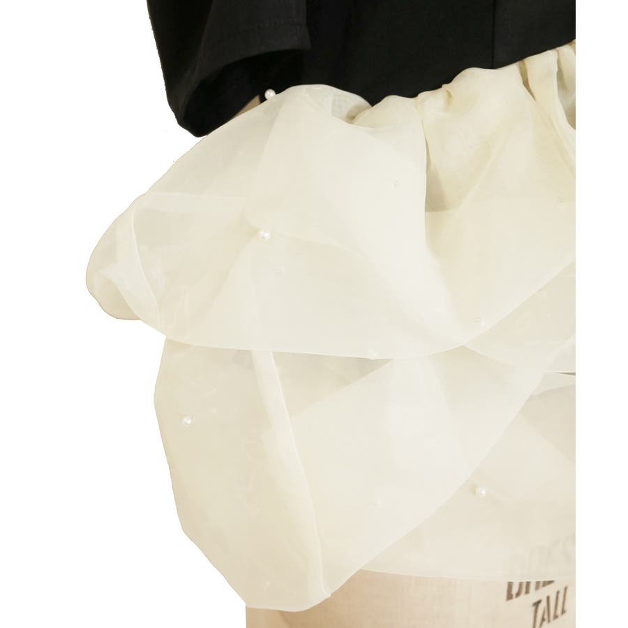艶感のあるオーガンジーの上に、ドット柄のようにパールを並べたレディライクな1枚です。