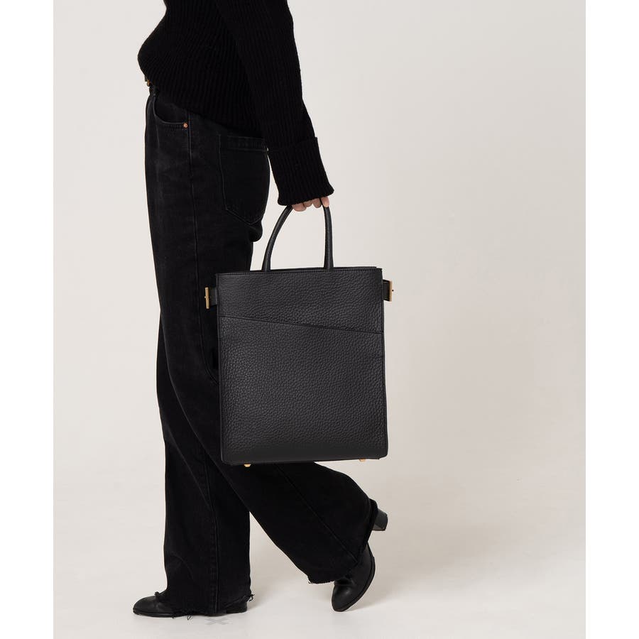 シュリンクレザーの素材感を活かしつつ「MOSS BOSTON TOTE BAG」と同様のサテ―ゴールド金具を付属し、エッジの効いた印象に仕上げました。