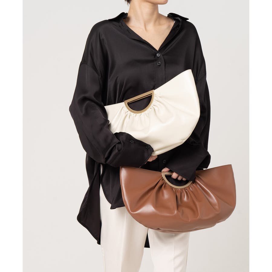 ハンドバックとしてもクラッチとしても使用でき、1点投入するだけでコーディネートにモード感を加えるルックスです。