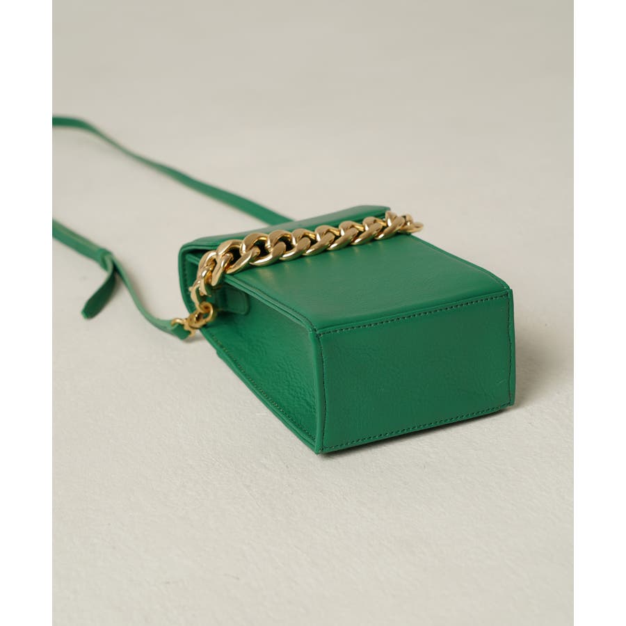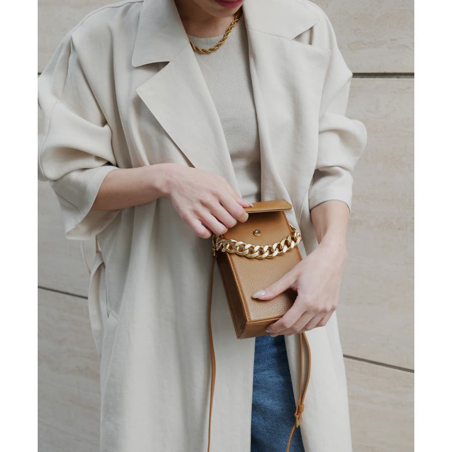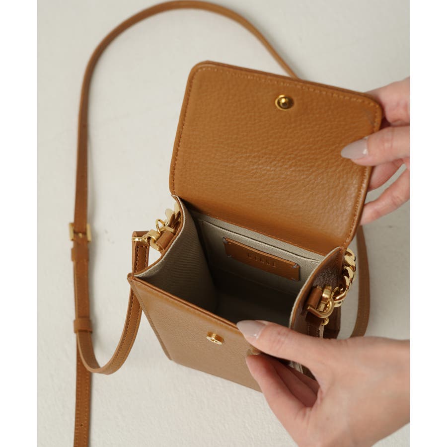 前後2枚のレザーパネルからなるトレンドのスクエアデザインで、ちょっとしたお出掛けにも使いやすいサイズ感が魅力。