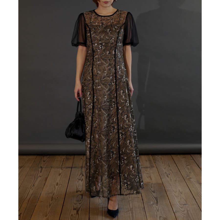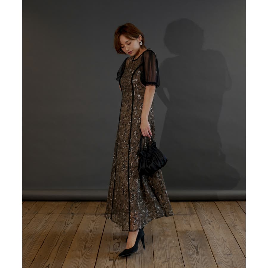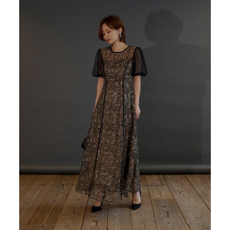 花柄の配色刺繍レースが女性らしい魅力を引き立てるドレス。