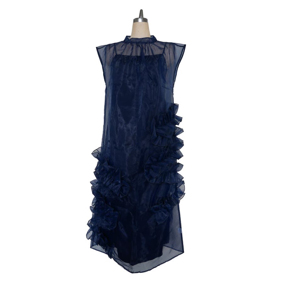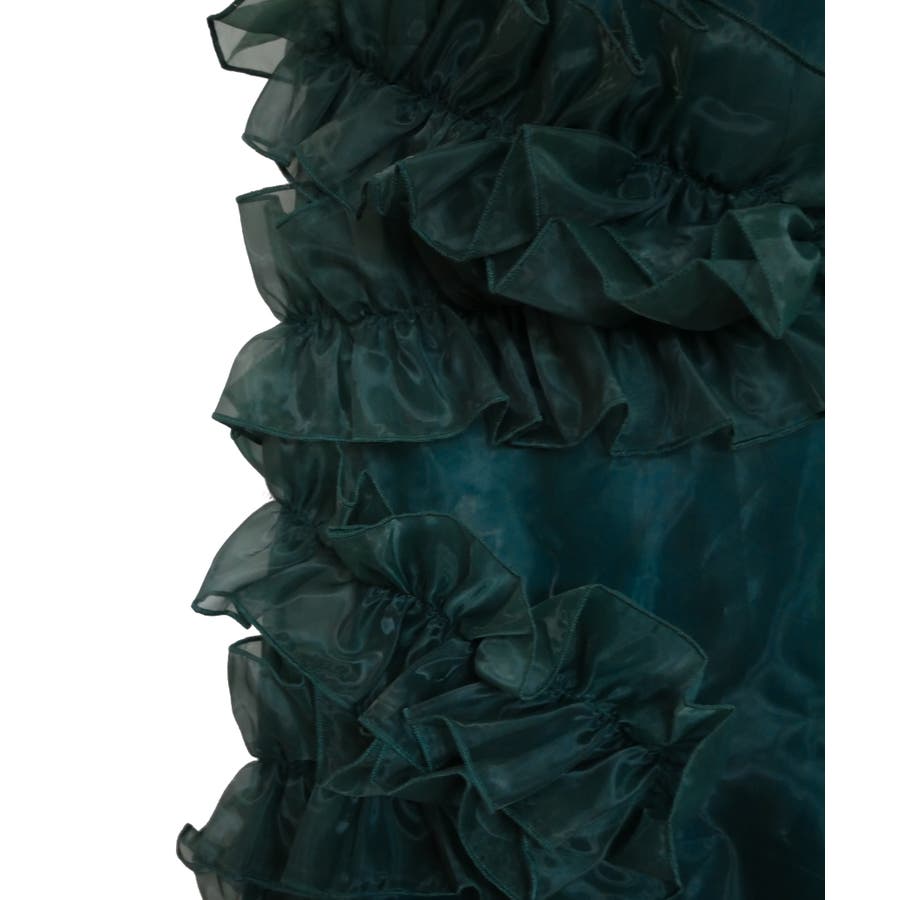 空気を含んで軽やかに広がるスカートは、ランダムにラッフルを配置しボリュームをもたせたデザインがポイントです。