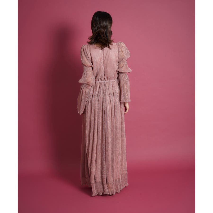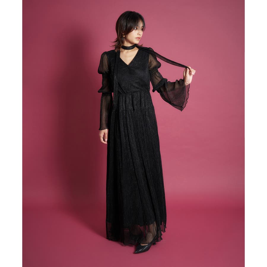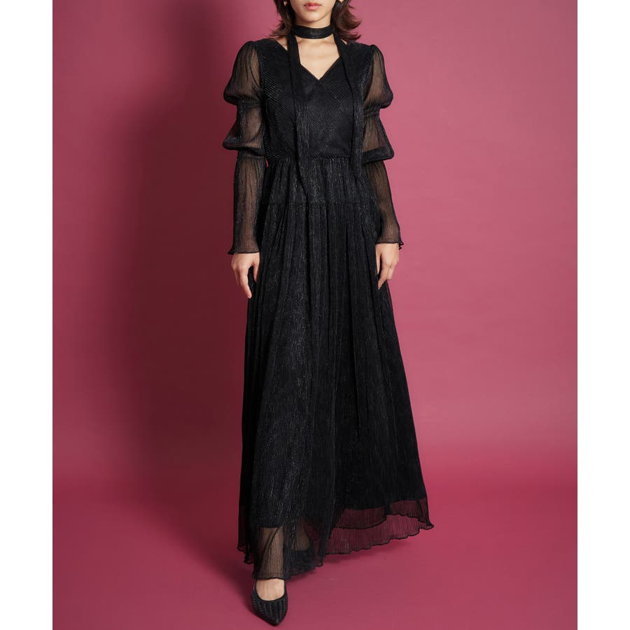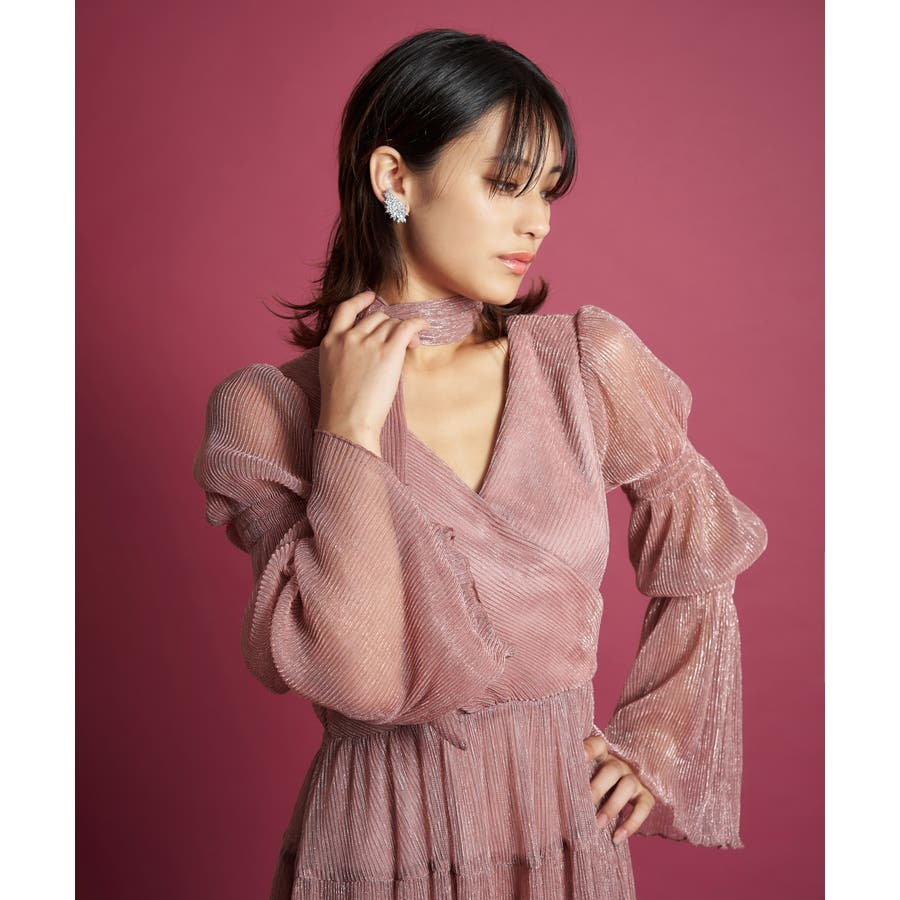 動くたびにキラっと光るラメとシアー感が相まって、女性らしい優美な印象でご着用いただけます。