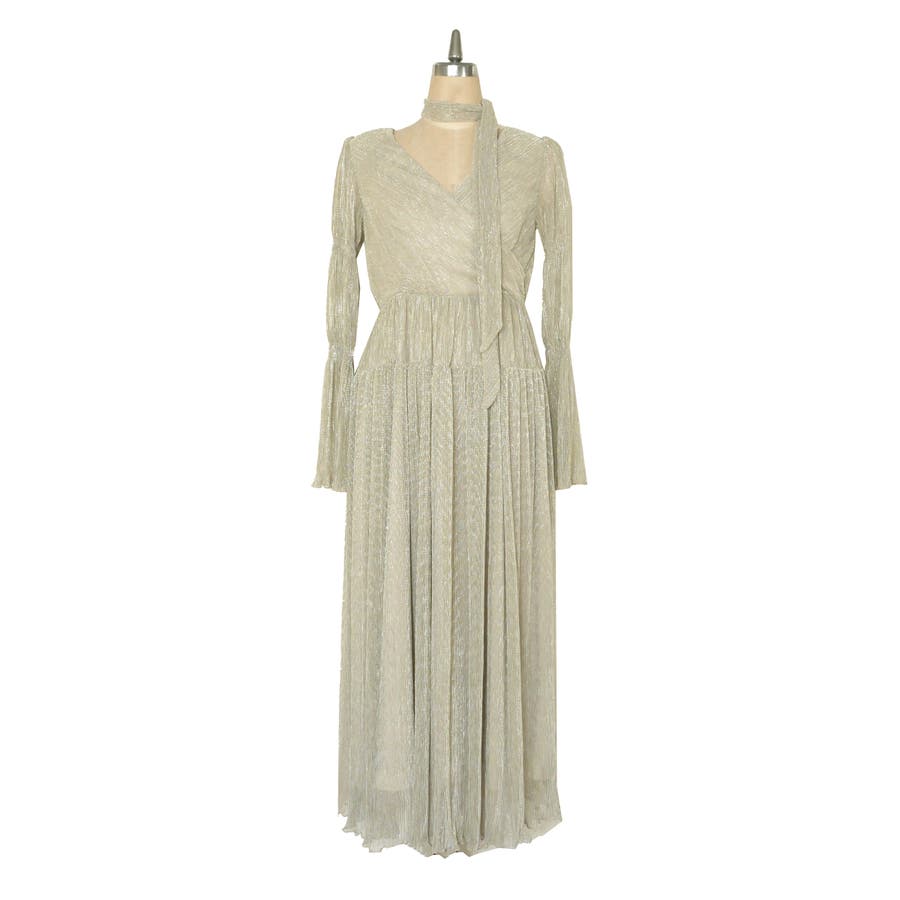 艶めく生地・ドラマティックなドレープを描くAラインシルエットが、シンプルながらも華やかな1枚です。