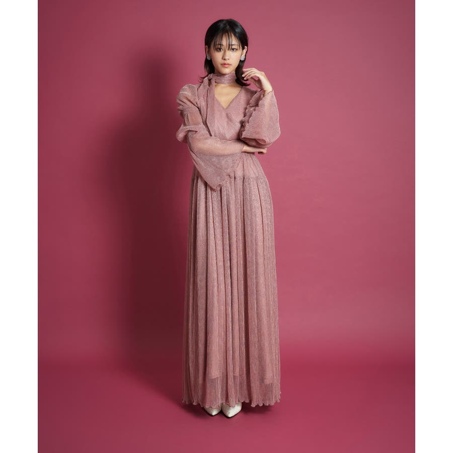胸元はカシュクール仕様でデコルテをスッキリ見せているので、アップヘアとの相性も抜群です。