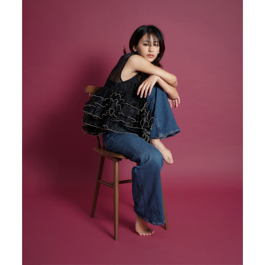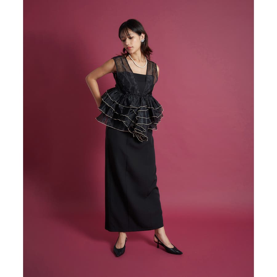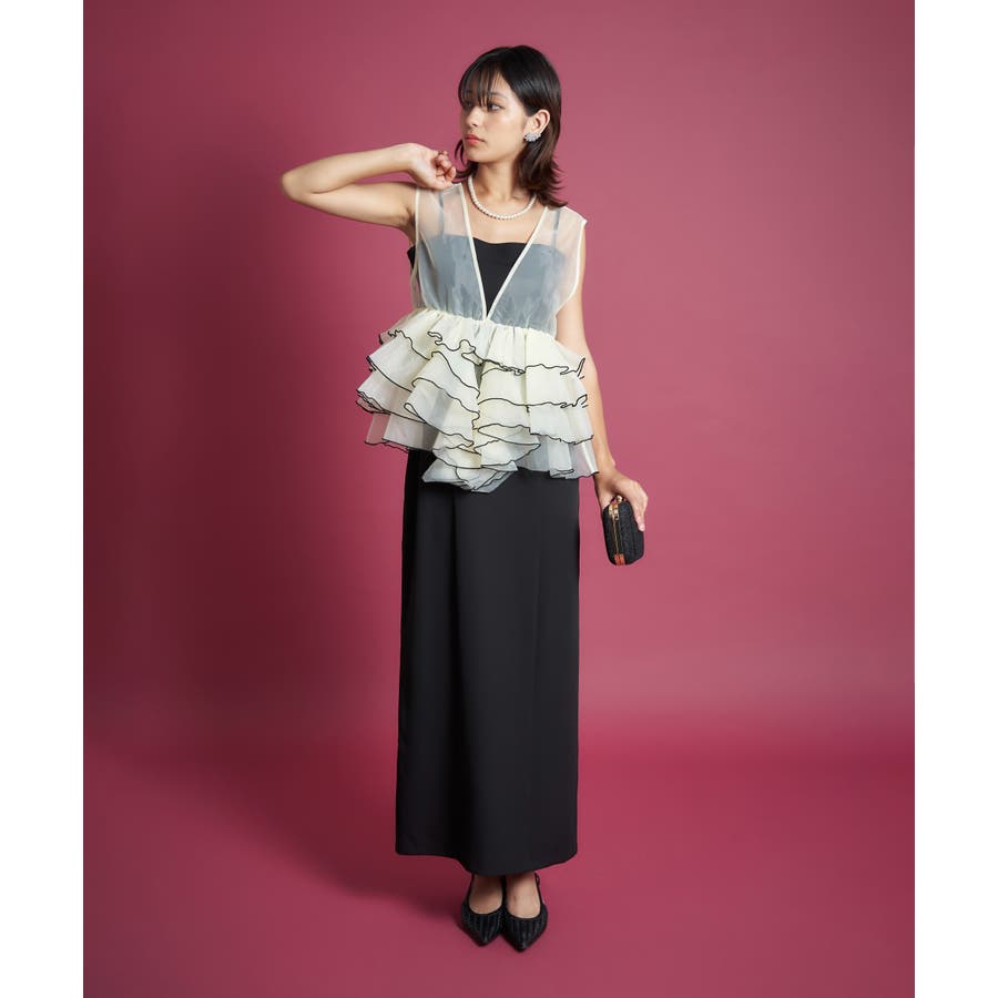 高め位置から施された立体的なフリルデザインがおしゃれ心をくすぐり、スタイルアップを発揮しつつ圧倒的映え力で華やかさを印象つけます。