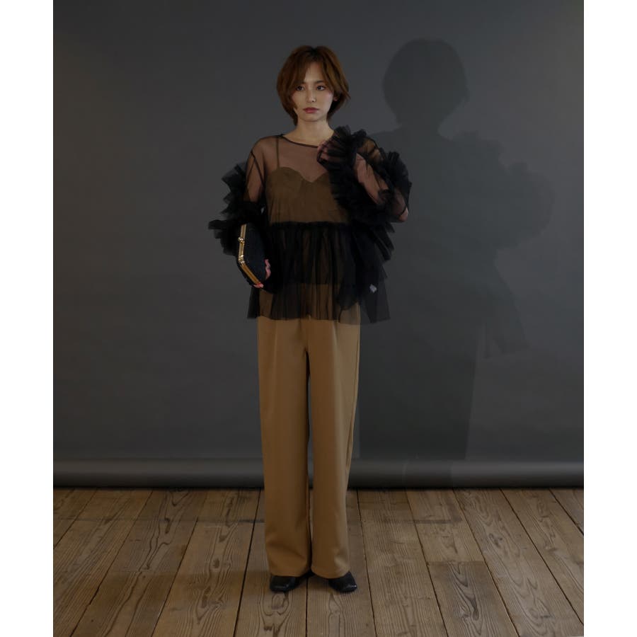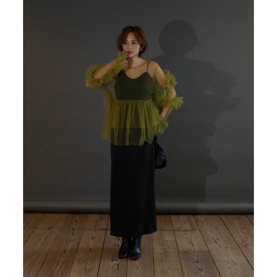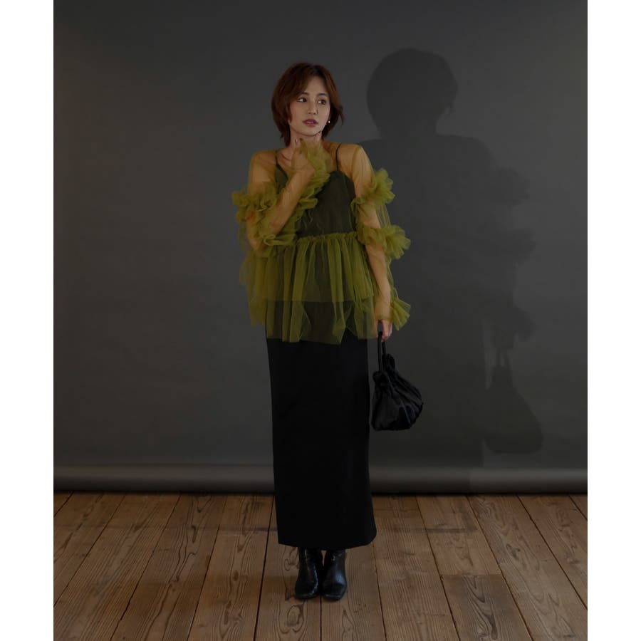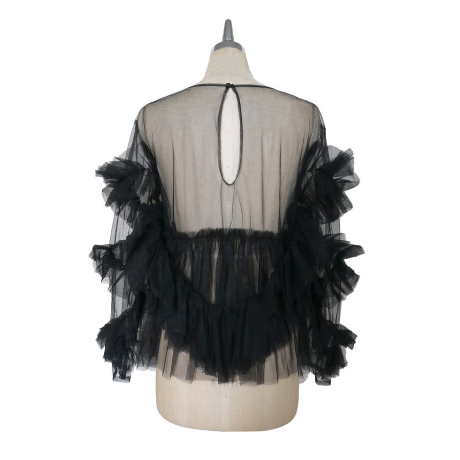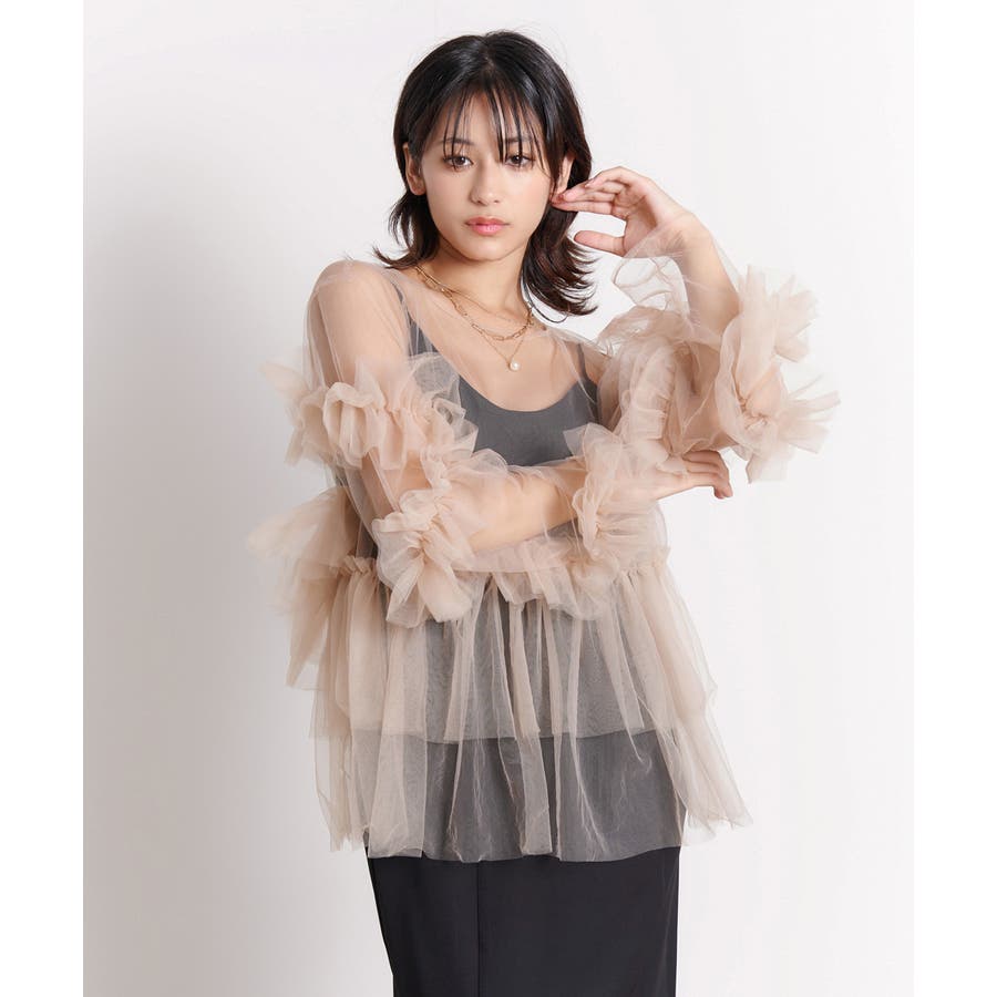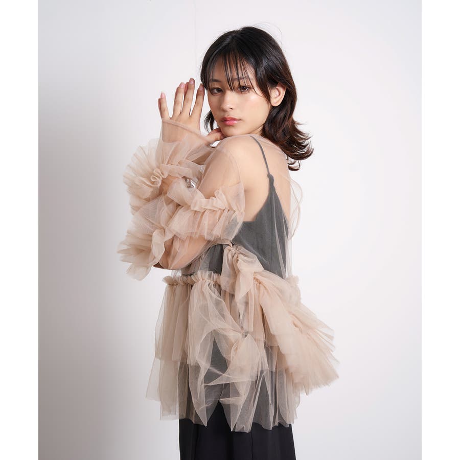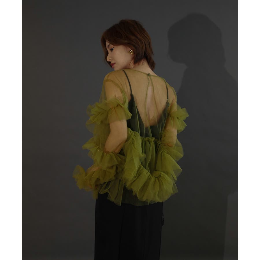 チュールフリルが贅沢に配されたシアートップス。