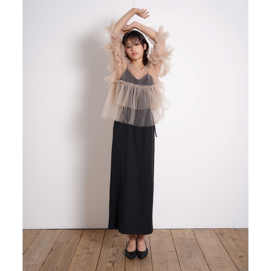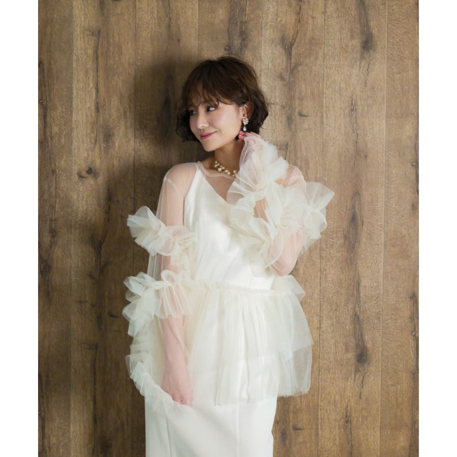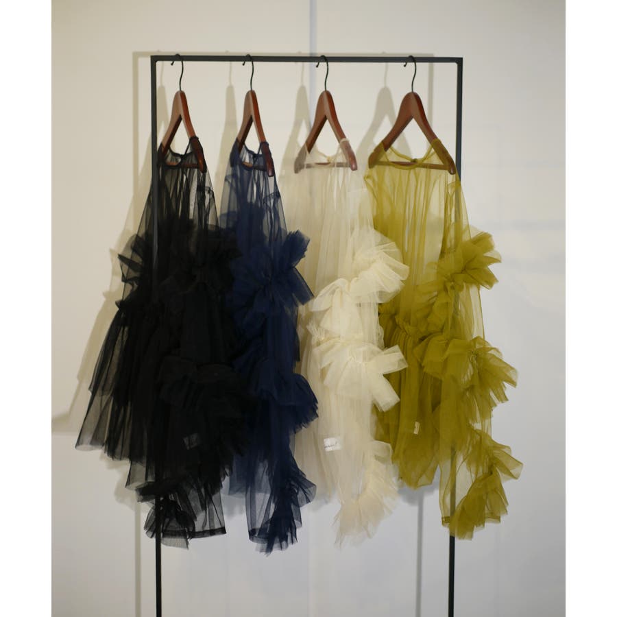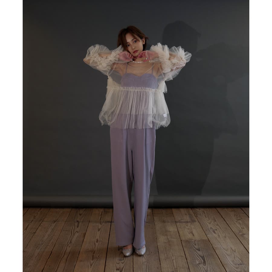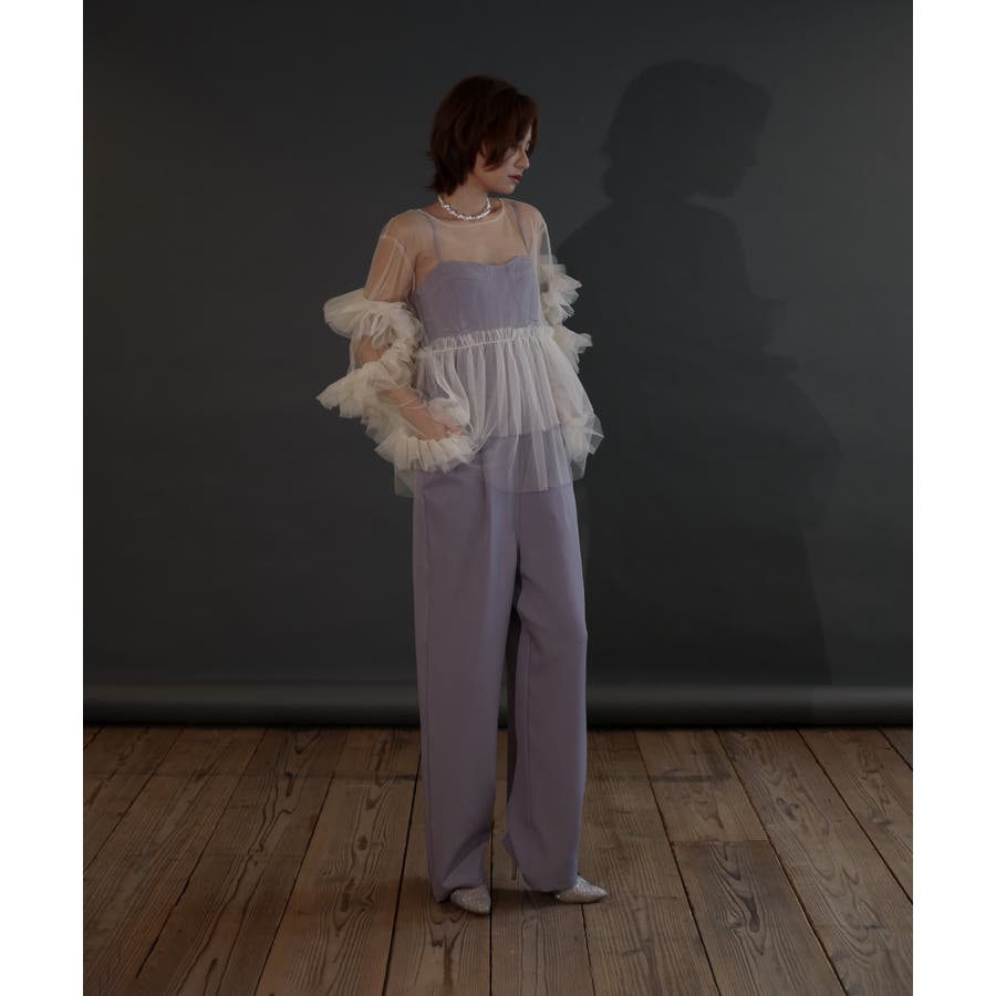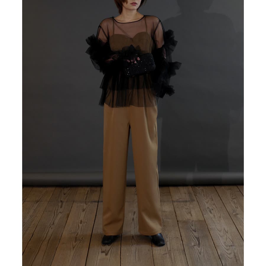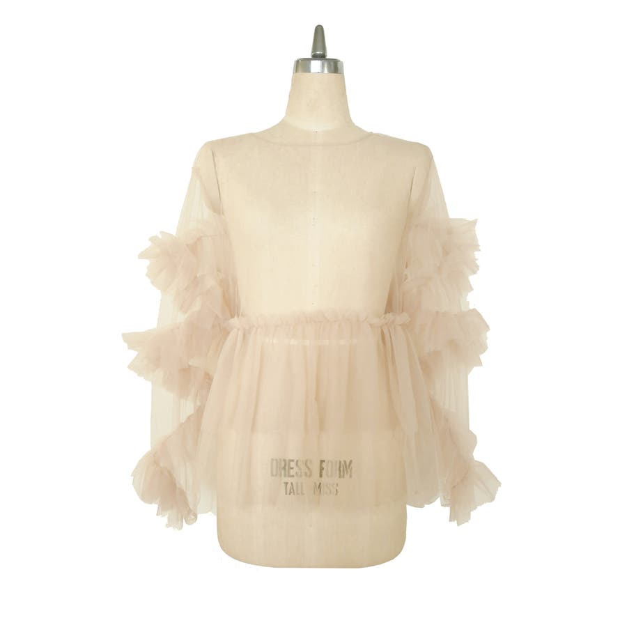 チュールフリルが贅沢に配されたシアートップス。