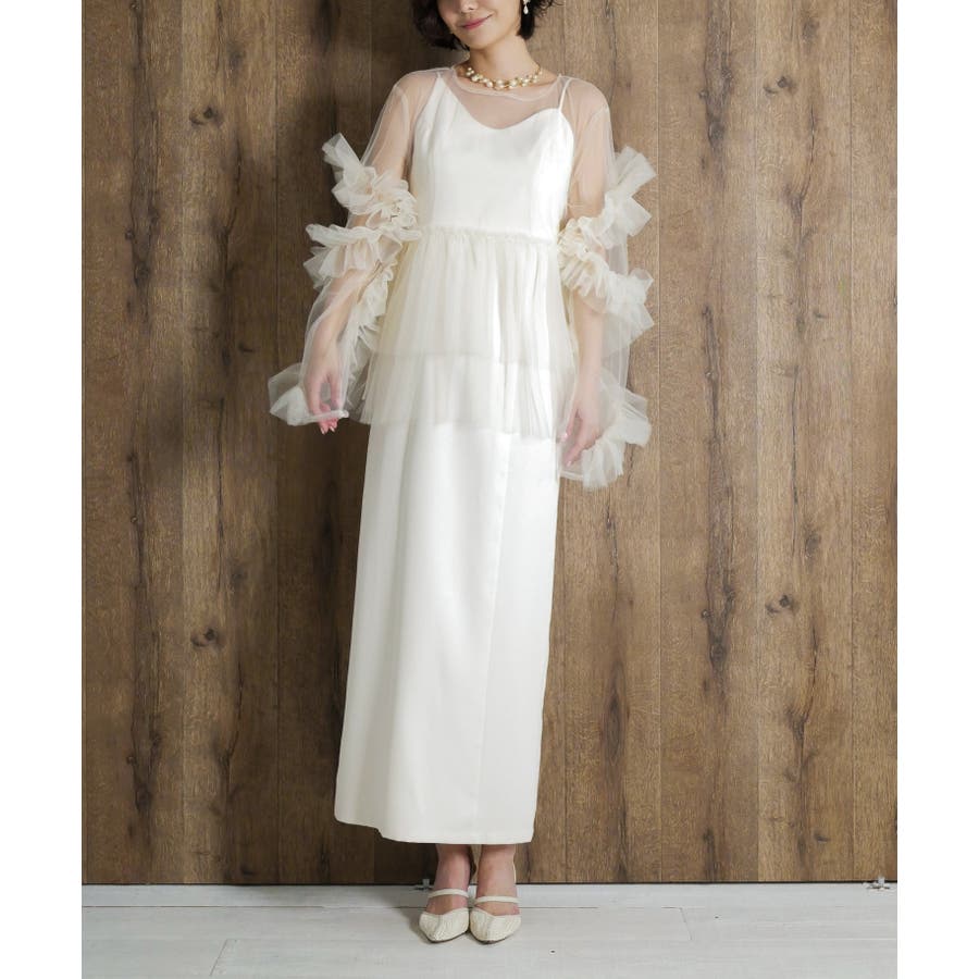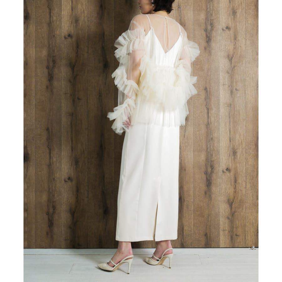 結婚式や二次会・謝恩会などのパーティーシーンには a2412002 asymmetry cami onepiece とレイヤードしてオケージョンドレスとしてご着用いただくのがおすすめです。