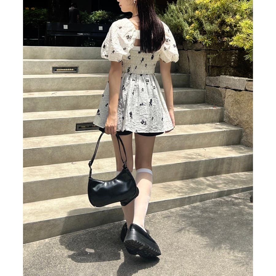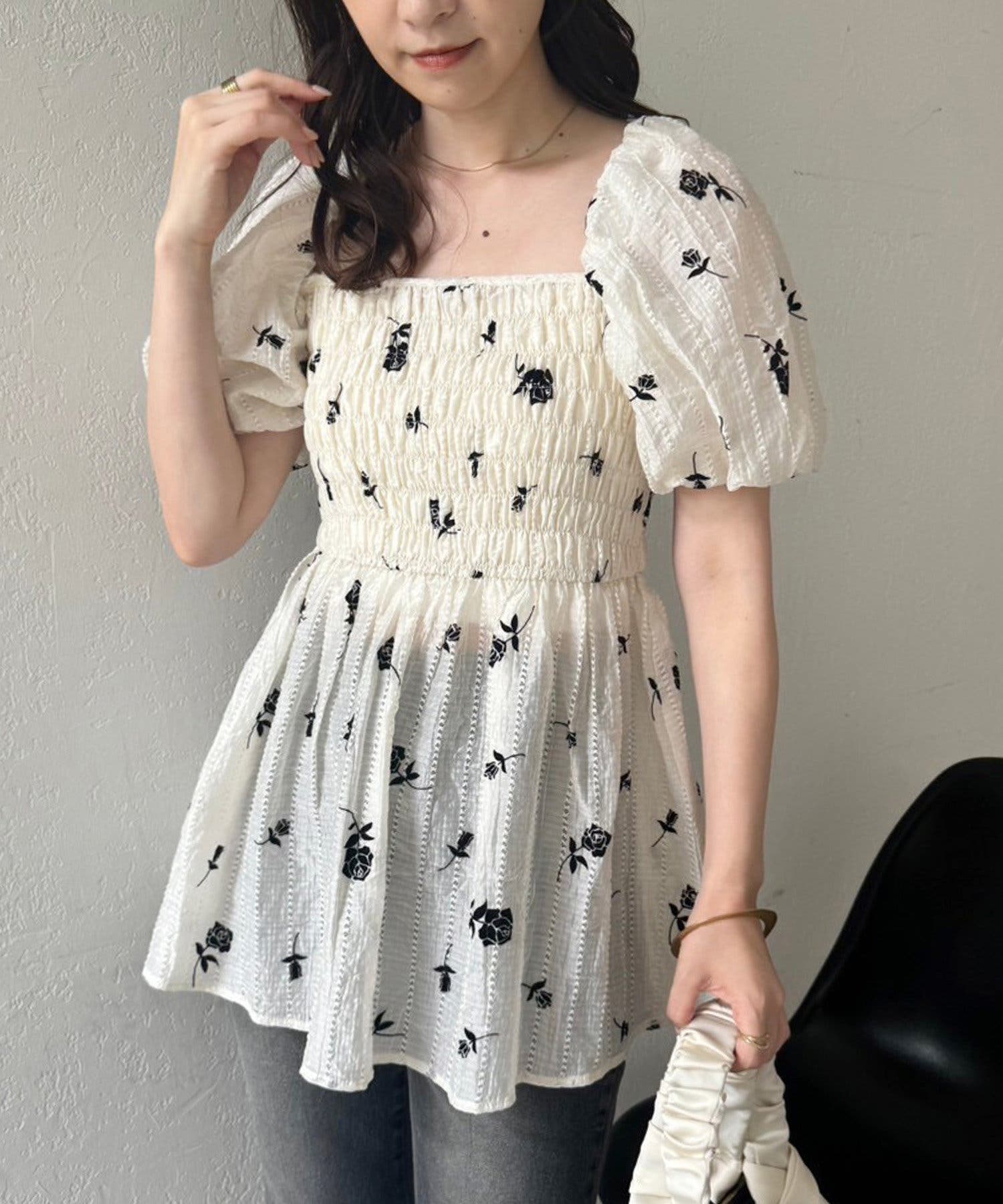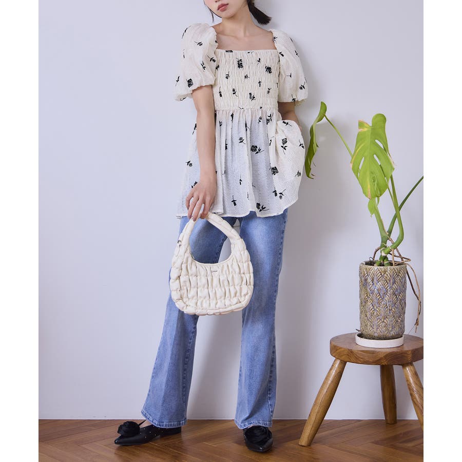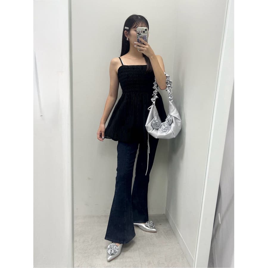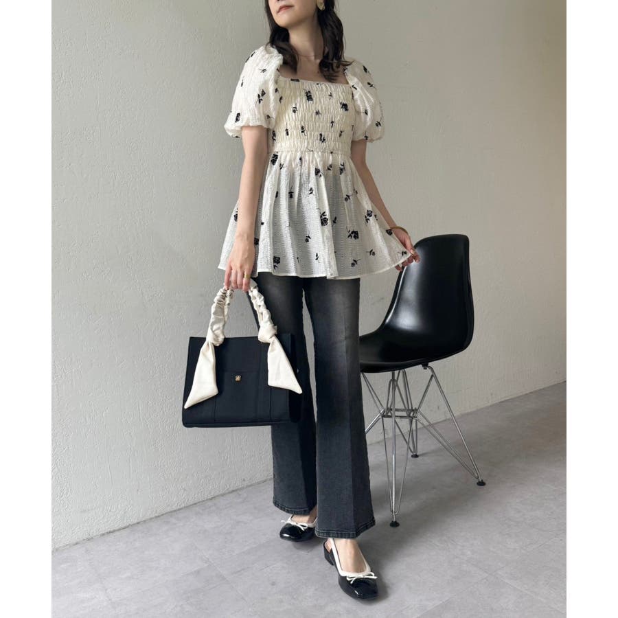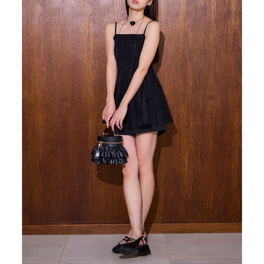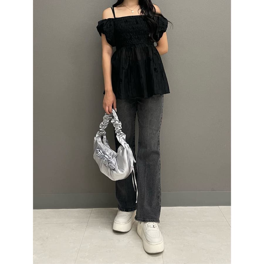 シャーリングがラインをきれいに出しつつ、華やかさをプラス。