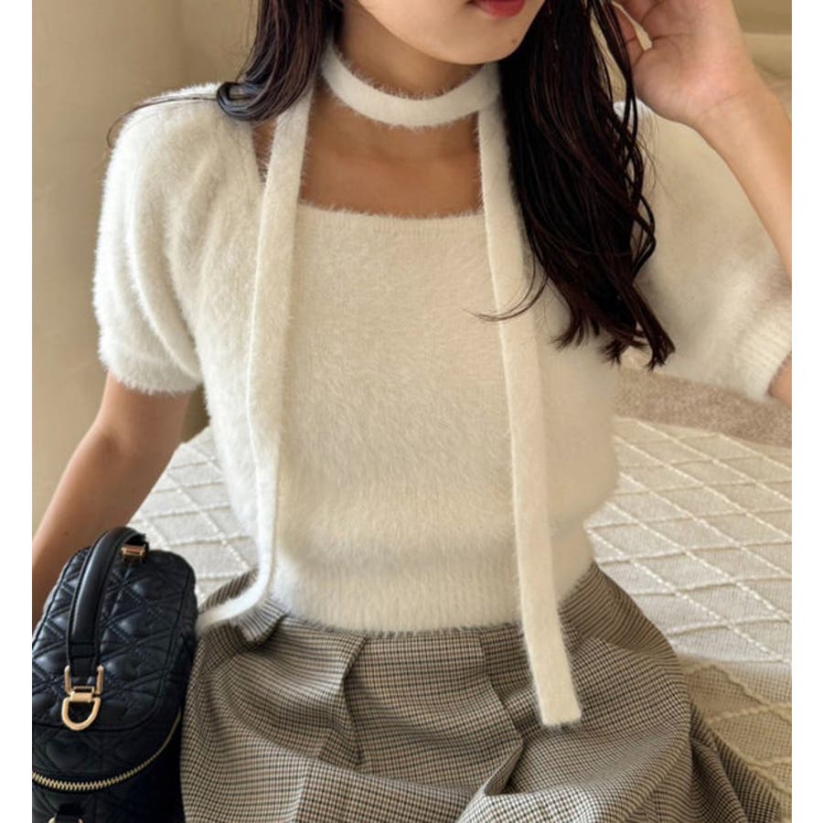 RMAF Remindmeandforever olivedesolive niceclaup 秋 秋服 秋物 冬 冬服 冬物 韓国 韓国系 韓国風 韓国ファッション 10代 20代 30代 大人 人気 大人かわいい 大人カジュアル トレンド 新作 プチプラ オフィス オフィスカジュアル オフィス服 ゆったり 半袖 半袖トップス トップス半袖 チョーカー付き 可愛い かわいい ニット 半袖ニット ニット半袖 秋トップス トップス秋 0142050181